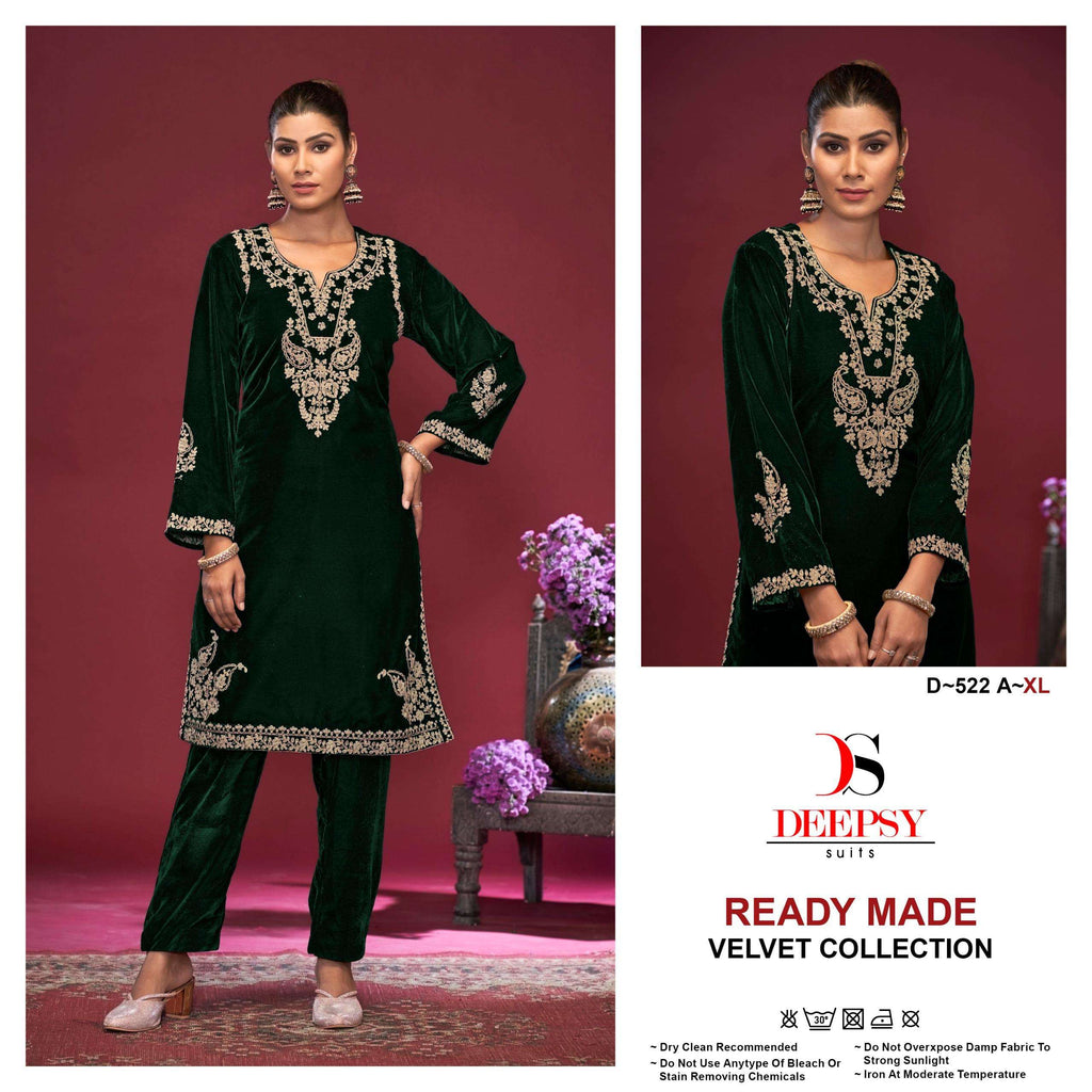ready to wear collcetion by deepsy suits top -velvet with hevay embroidery work bot -velvet size- xl-xxl *rate -1325+gst