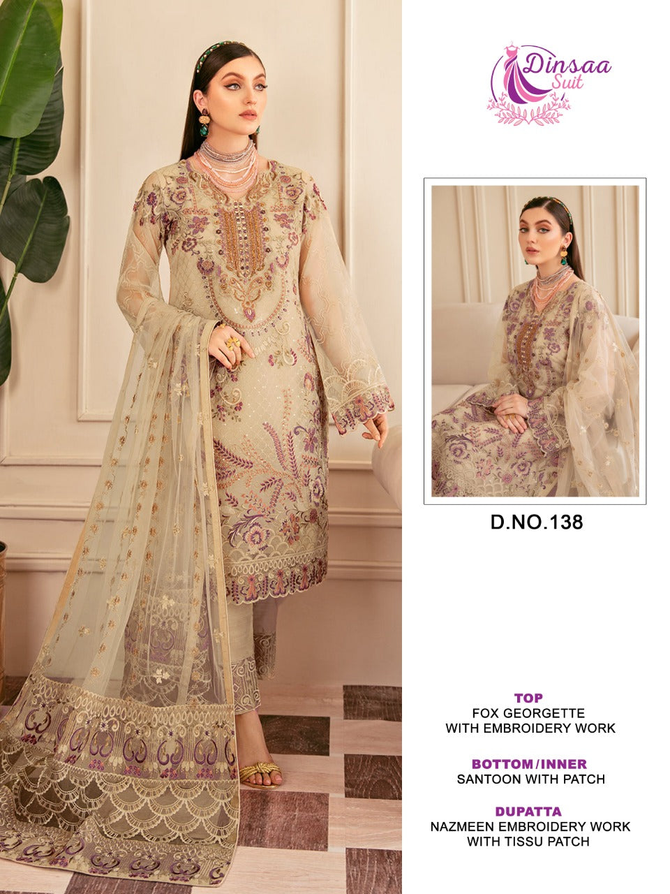Dinsaa Dno 138 Georgette With Fancy Embroidery Work Stylish Designer Casual Wear Salwar Kameez
