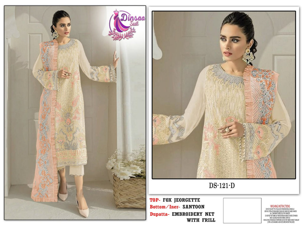 Dinsaa Suit Dno 121 D Georgette With Heavy Embroidery Work Stylish Designer Salwar Suit