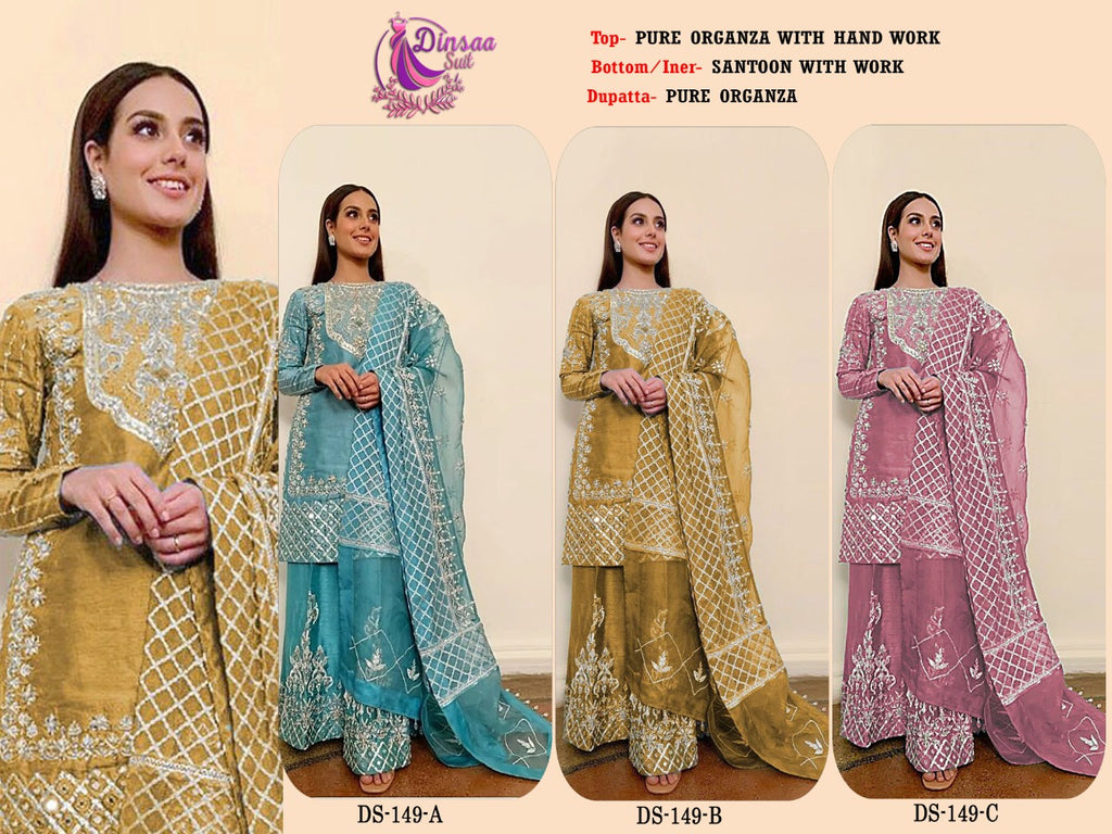 Dinsaa Suit Dno 149 Organza With Heavy Embroidery Work stylish Designer Pakistani Party wear Salwar Kameez
