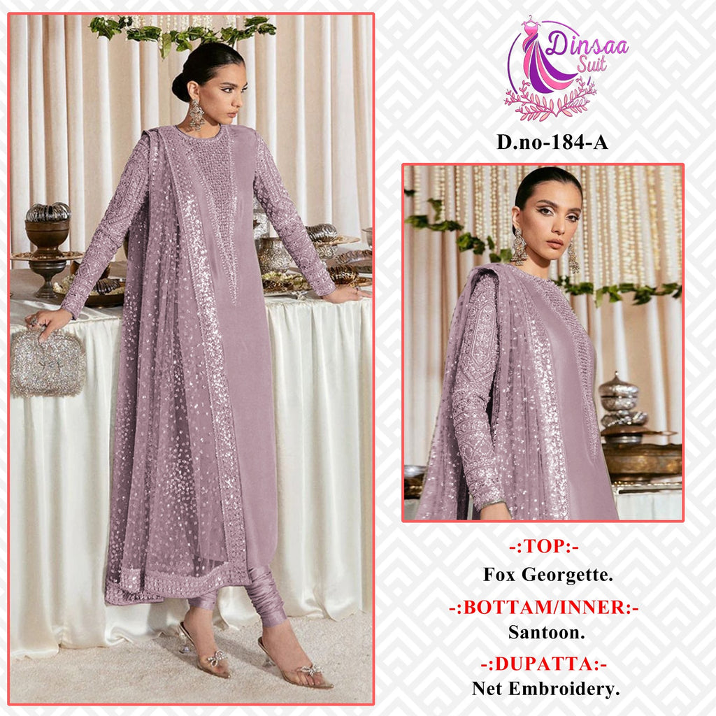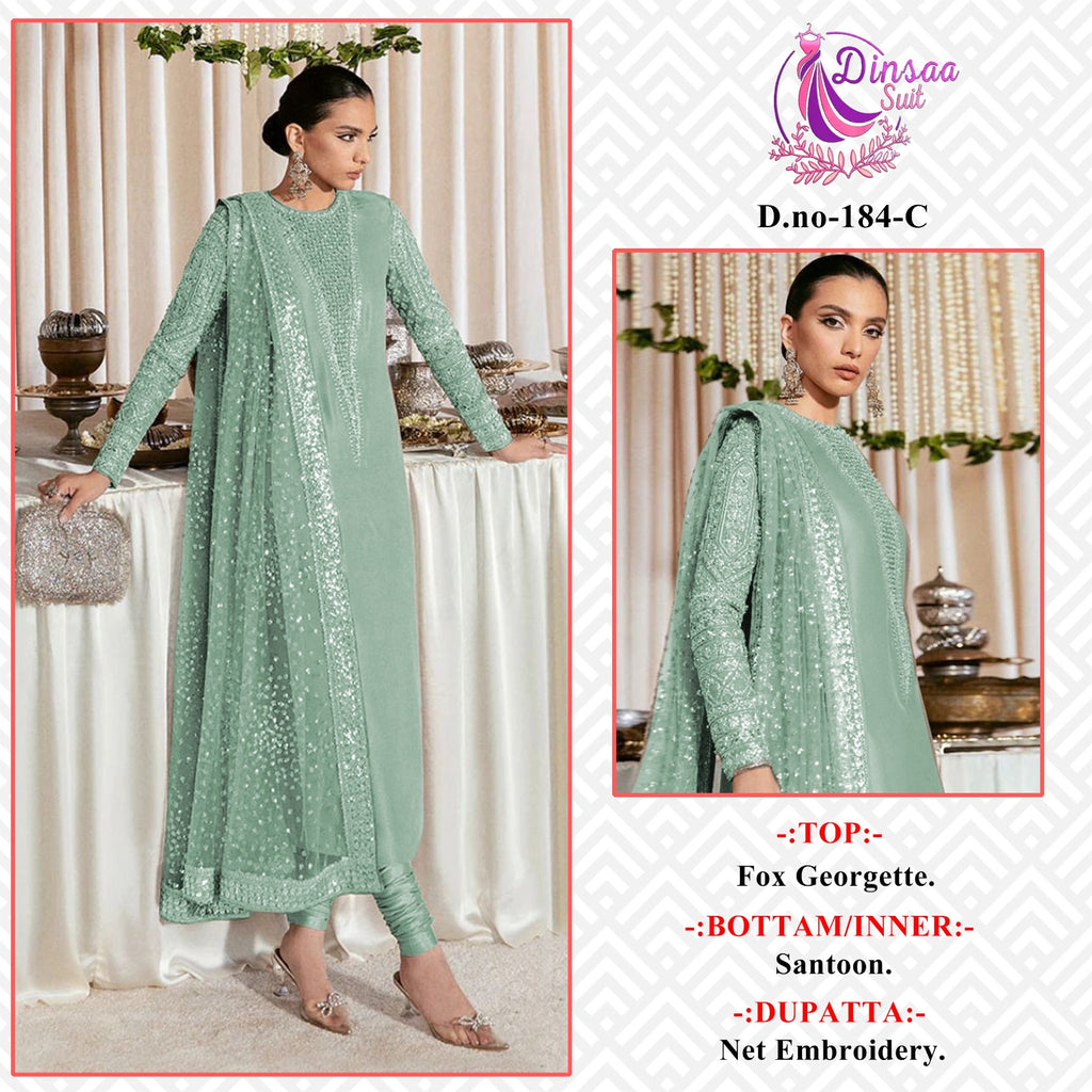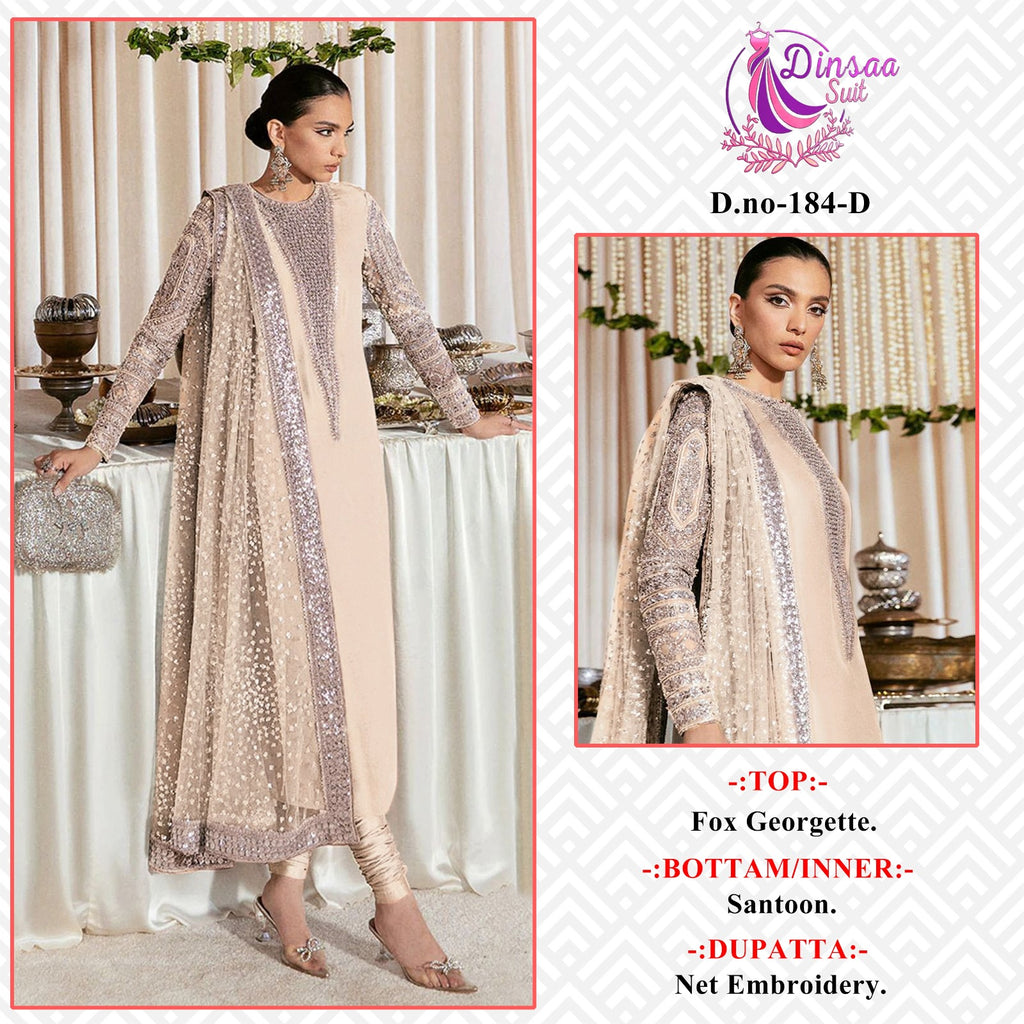 Dinsaa Suit DS 184 Georgette Embroidery Work Partywear Designer Salwar Kameez