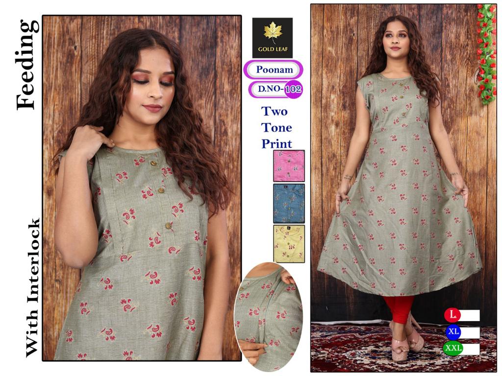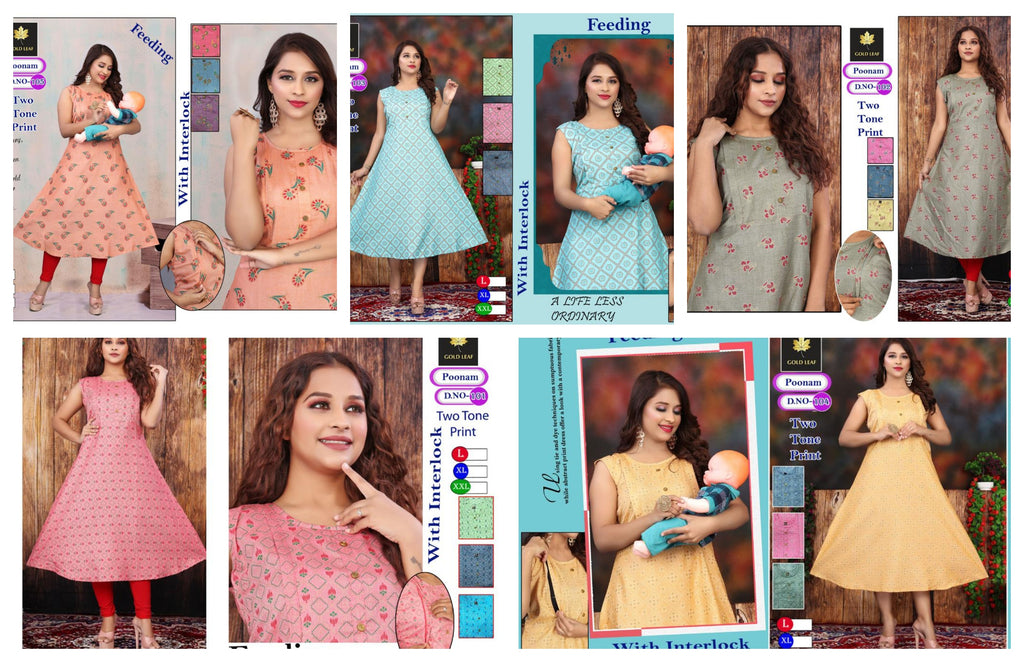 Feeding Top Size : L XL XXL Fabric : Fancy Two Tone Prints |