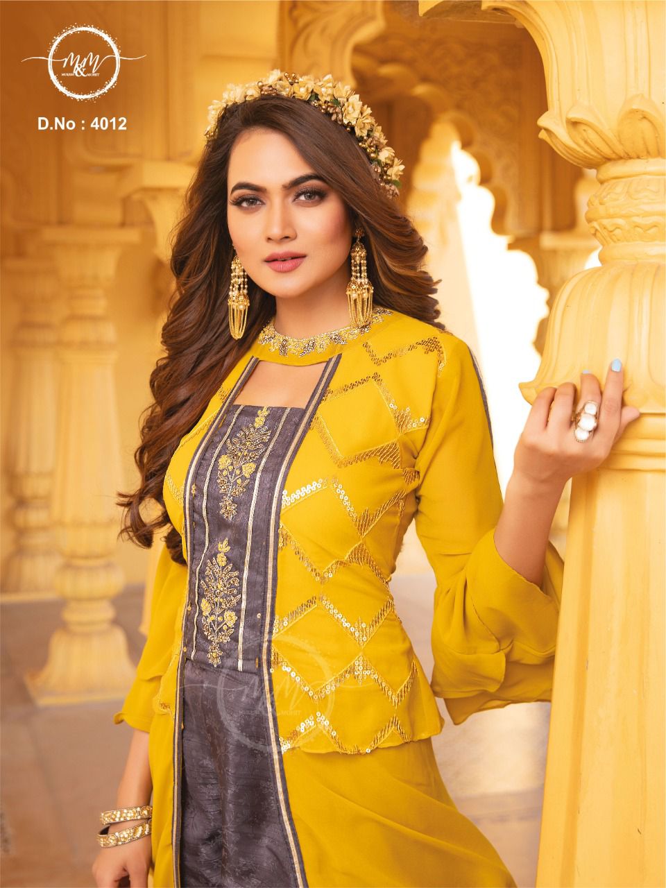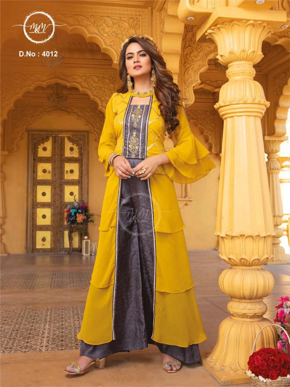 M And M D No 4012 Fancy Designer Ready Made Wedding Wear Kurtis With Heavy Embroidery