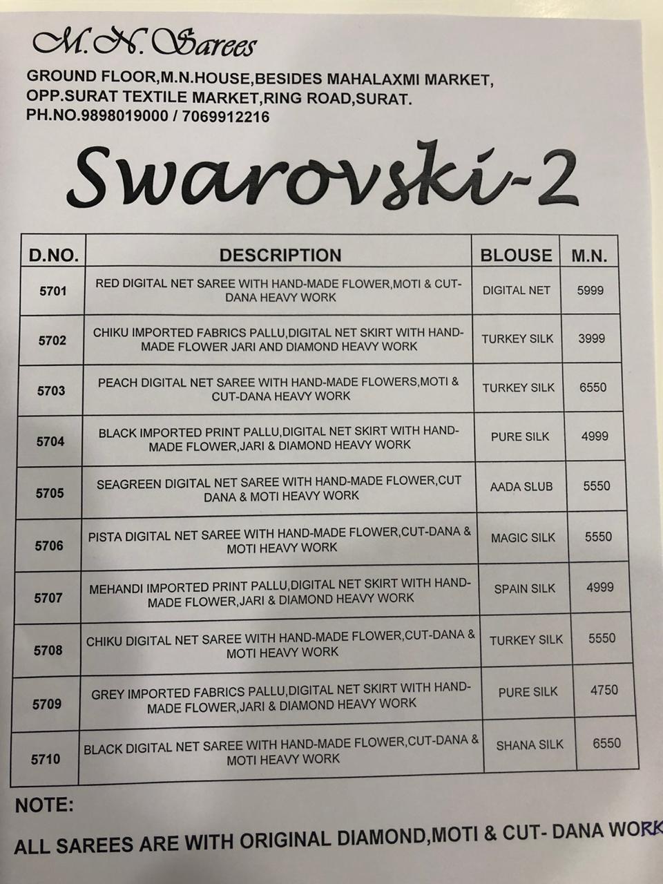 M N Saree Presents By Swarovski Vol 2 Fancy Designer Printed Exclusive Casual Wear Sarees