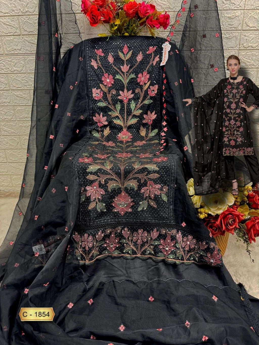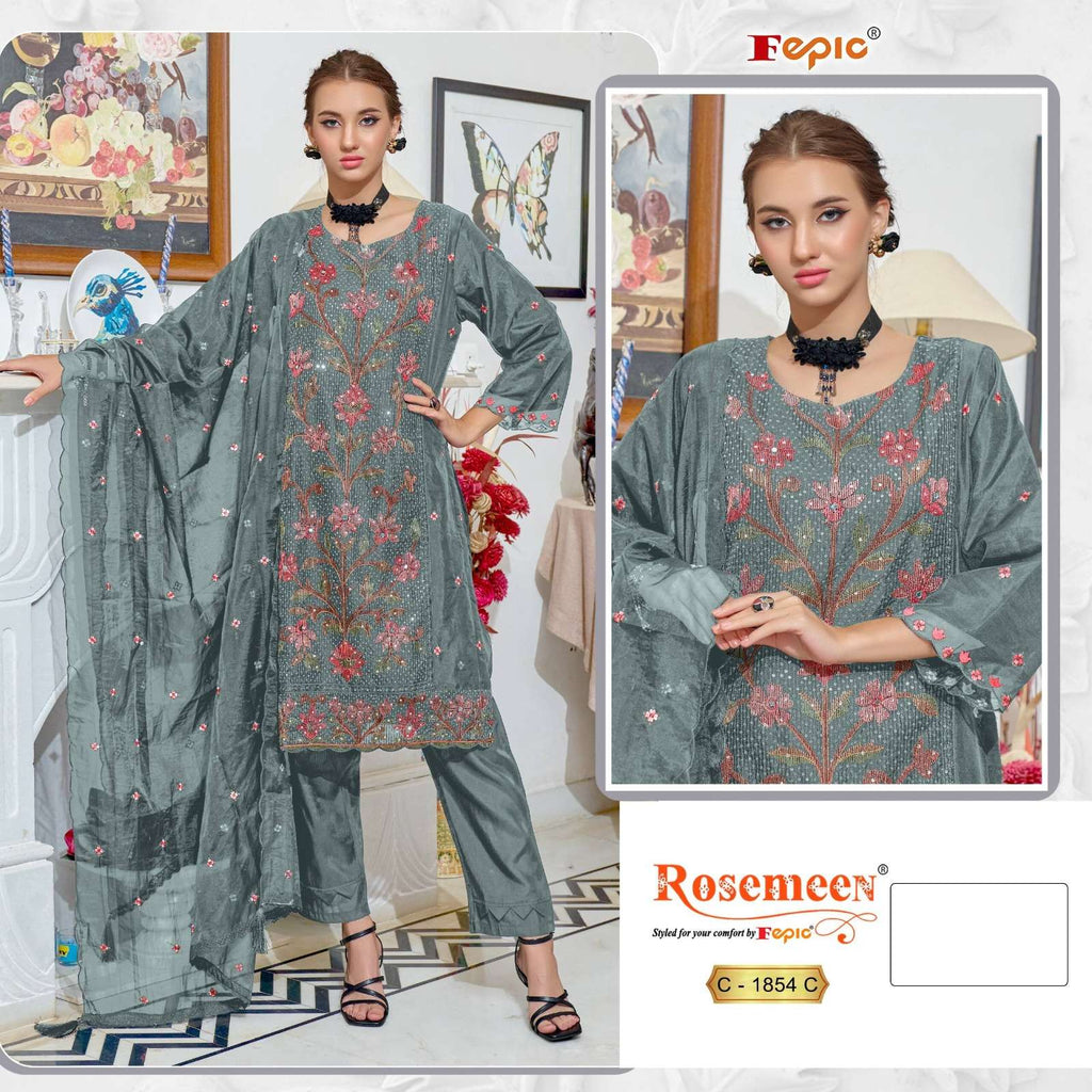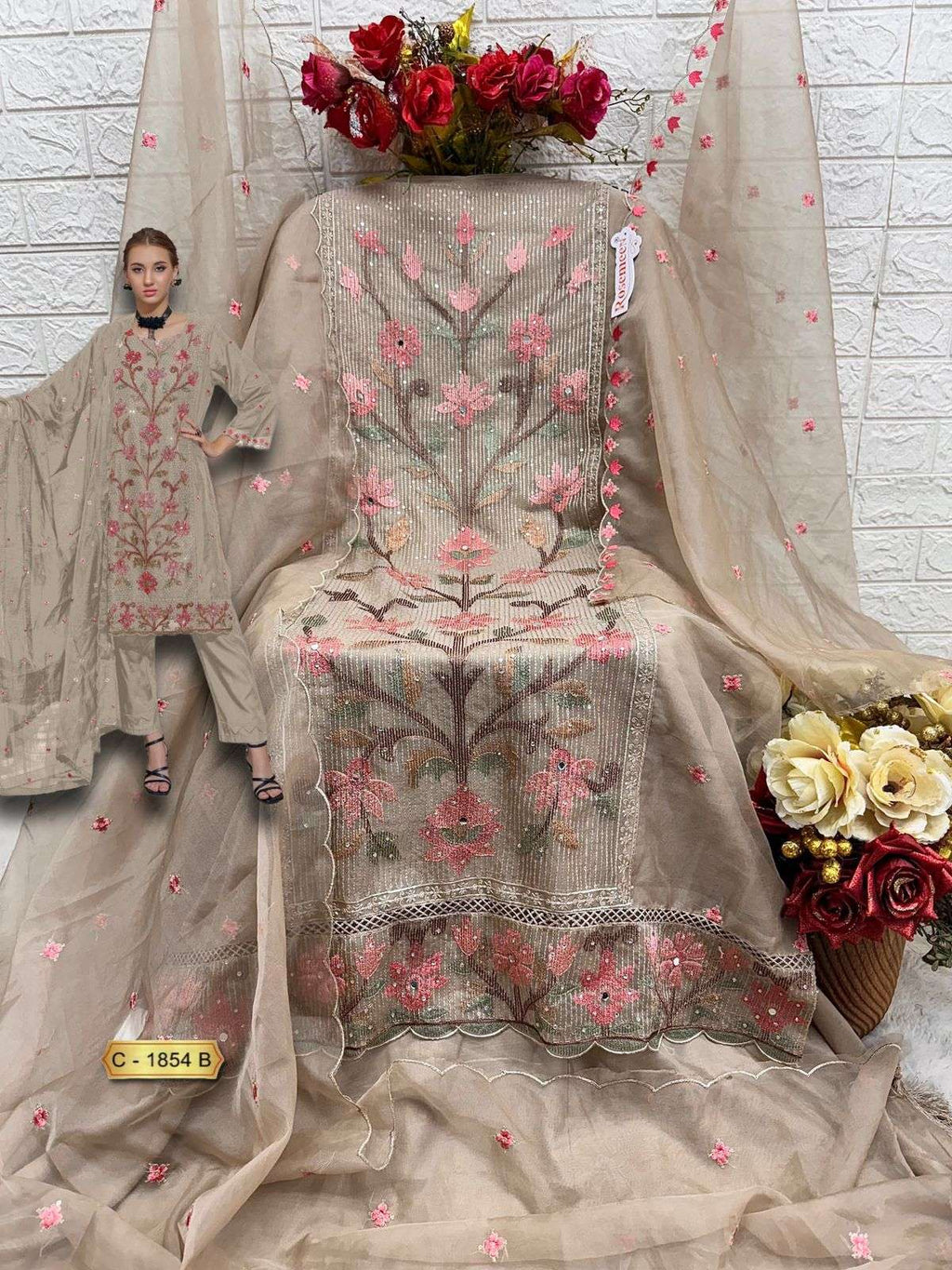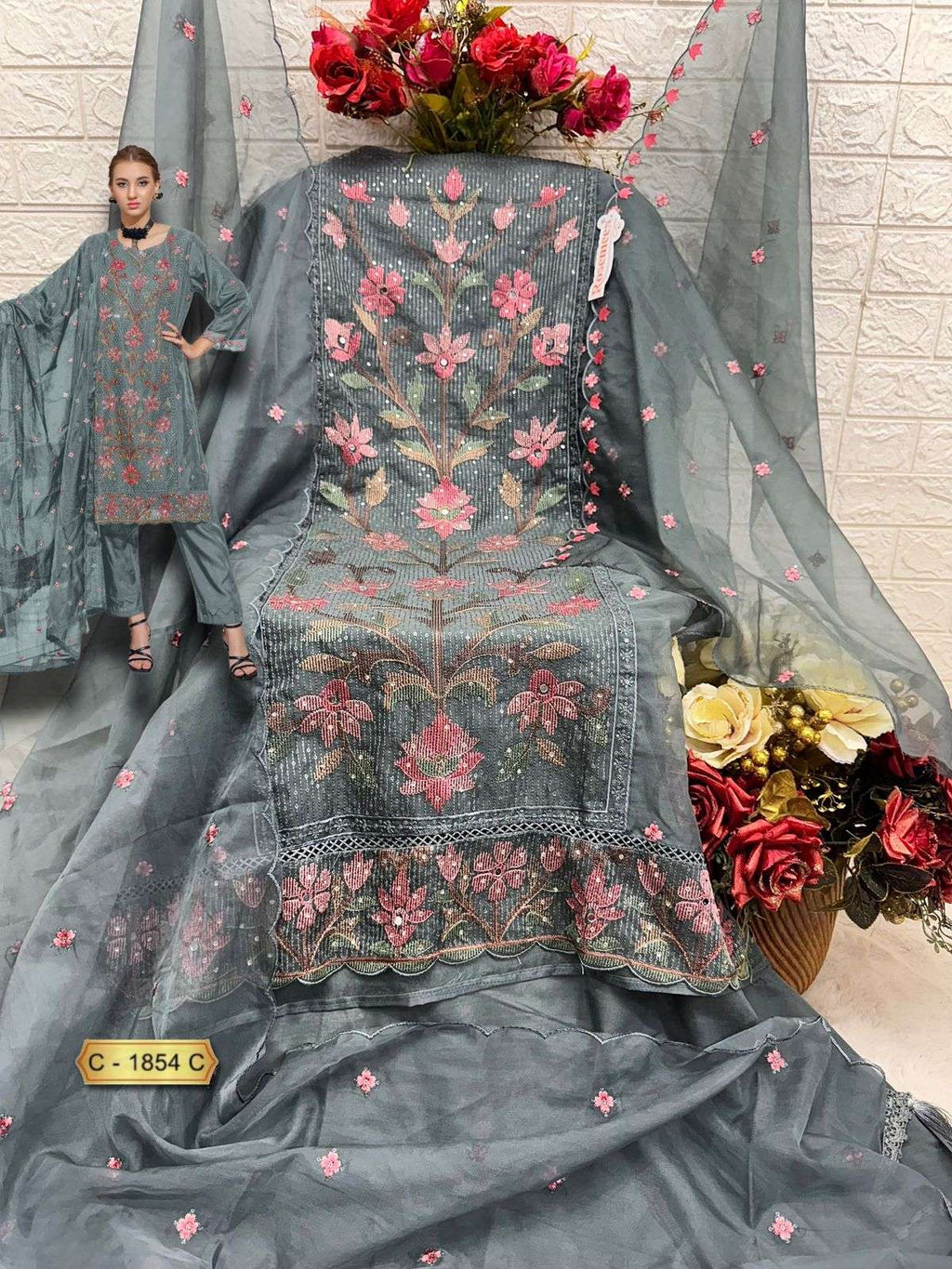 top:- organza embroidered 3 pcs |