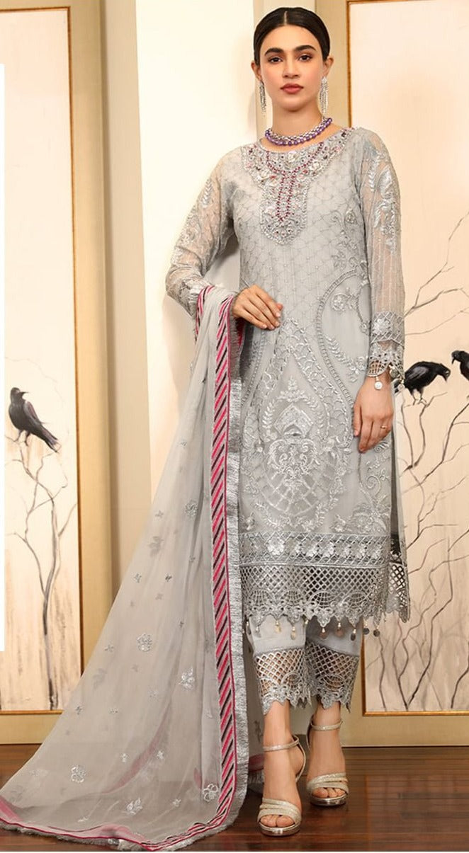 Fabric Details : Top : Georgette With Heavy Embroidery Dupatta : Butterfly Net With Heavy Embroidery Bottom : Santoon With Embroidered Payal Bunches Inner : Santoon |