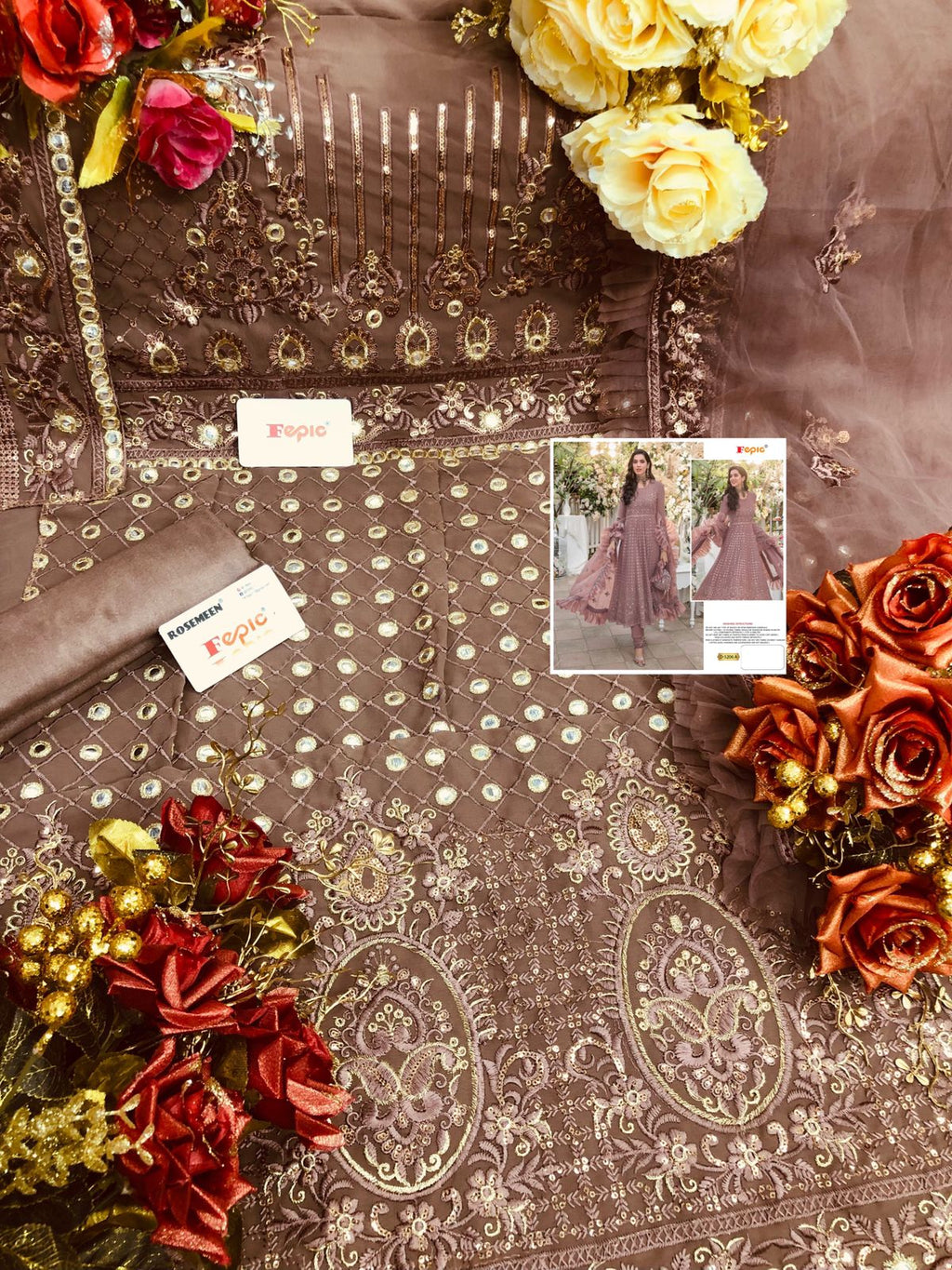 Other Details | Top:- GEORGETTE EMBROIDERED Dupatta:-NET EMBROIDERED WITH FOUR SIDE FRILL Bottom:-SANTOON INNER:-SANTOON Rate :- 1199/- |