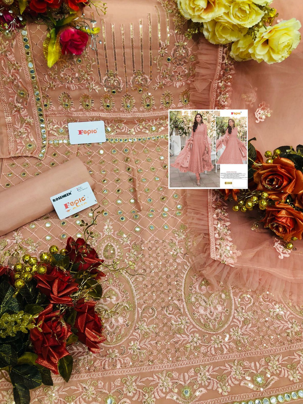Other Details | Top:- GEORGETTE EMBROIDERED Dupatta:-NET EMBROIDERED WITH FOUR SIDE FRILL Bottom:-SANTOON INNER:-SANTOON Rate :- 1199/- |