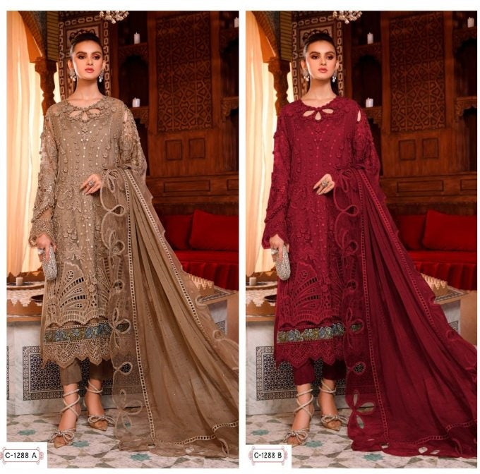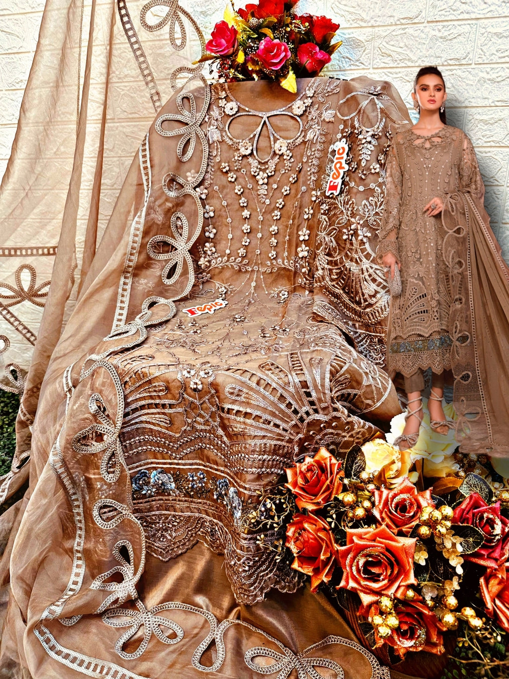 Fepic Suit Rosemeen C 1288 Organza Embroidered Pearl Work Pakistani Suit