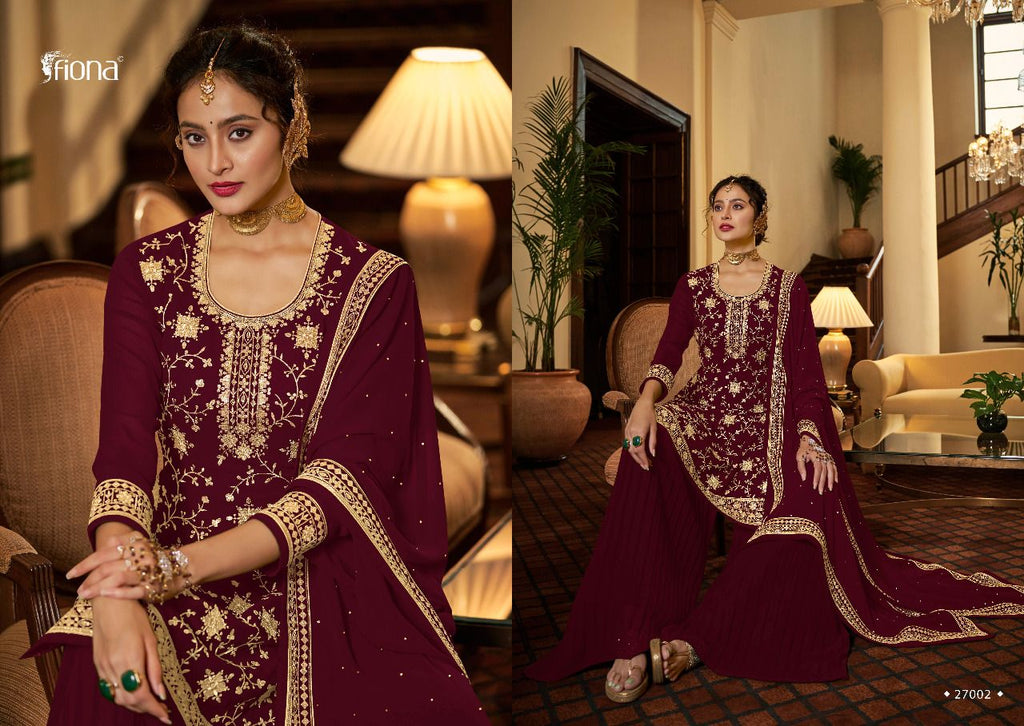 TOP – GORGETTE WITH HEAVY EMBROIDERY AND SEQUENCE WORKBOTTOM – STICHED PLAZZO AND SHARARA WITH INNERDUPPATA – GORGETTE HEAVY EMBROIDERY DUPPATA |