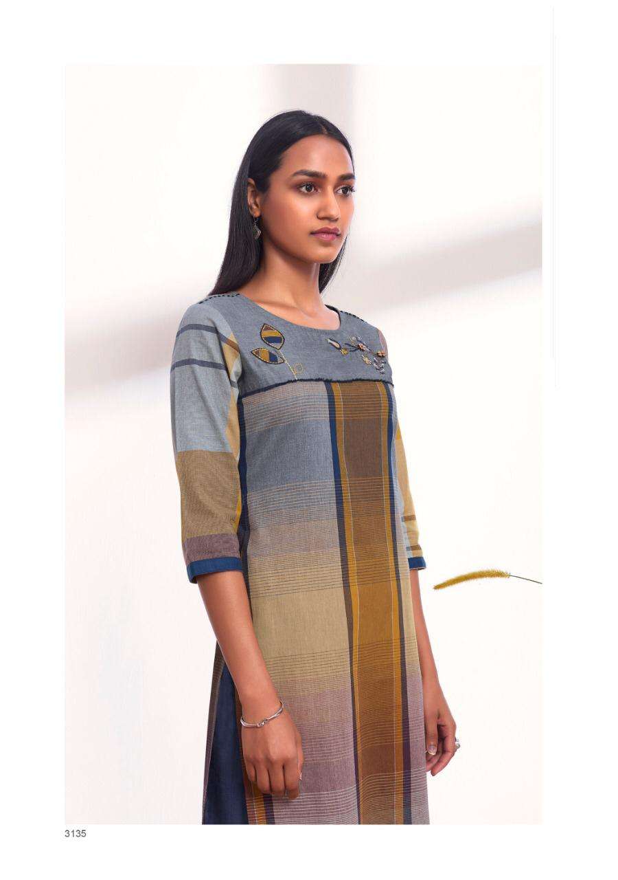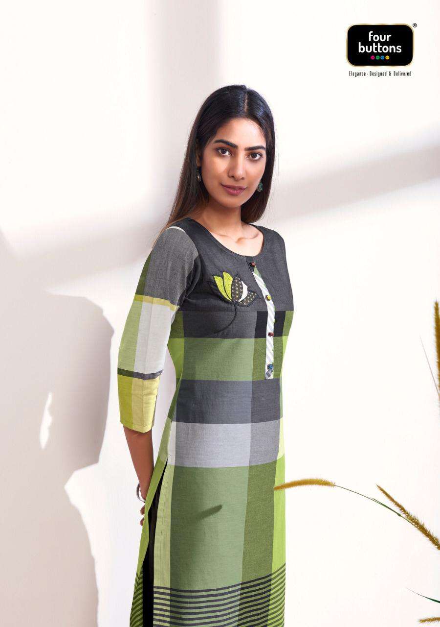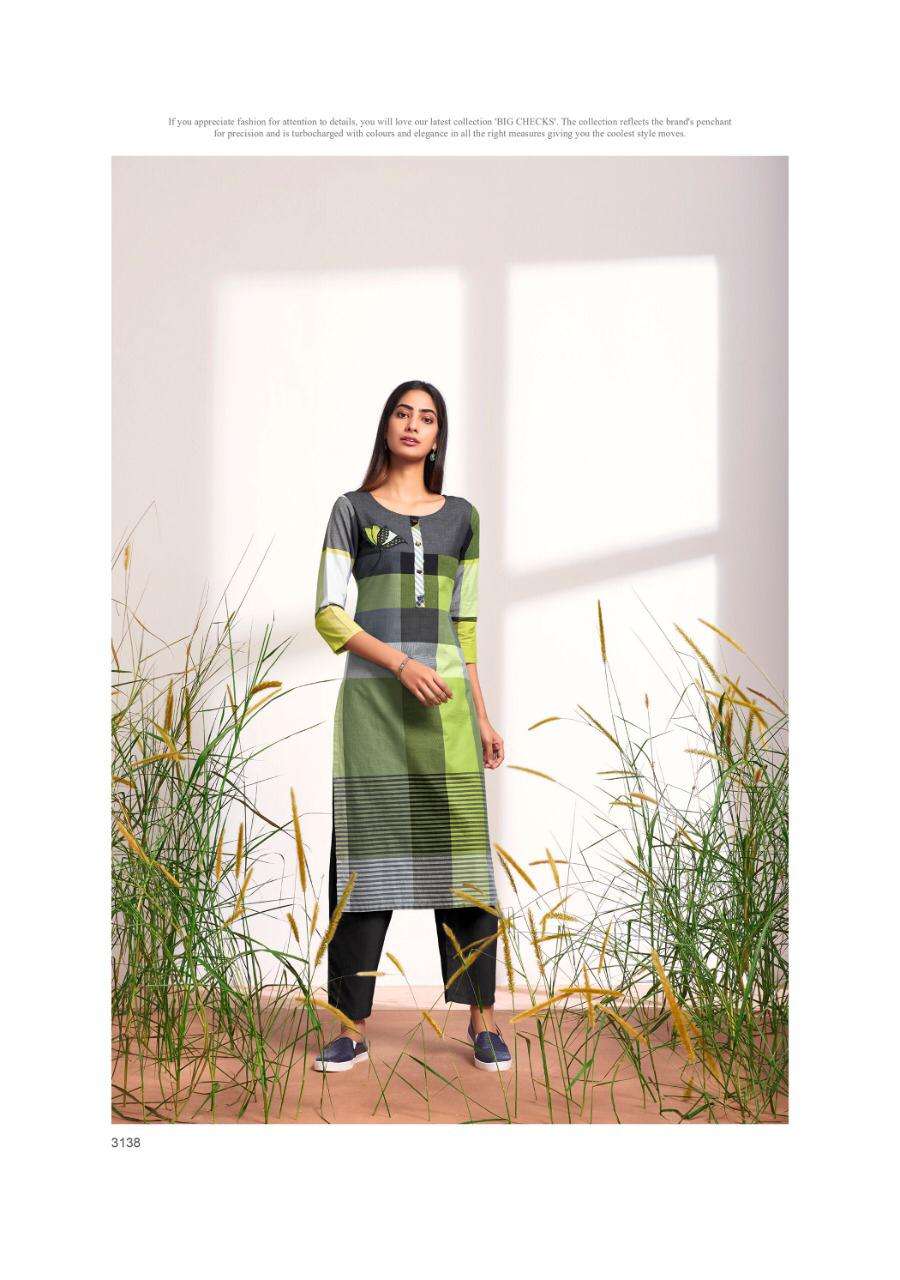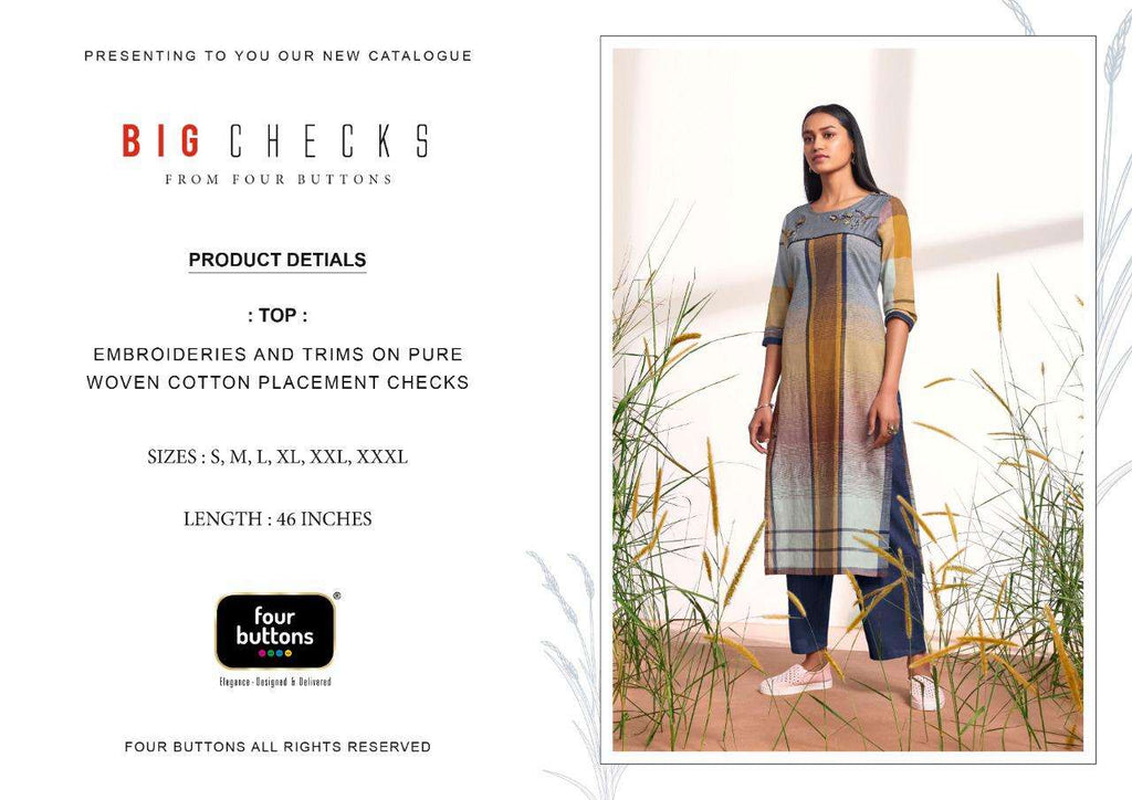 KURTI - 100% PURE COTTON WEAVING PLACEMENT CHECKS WITH EMBROIDERIES AND APPLIQUES. |