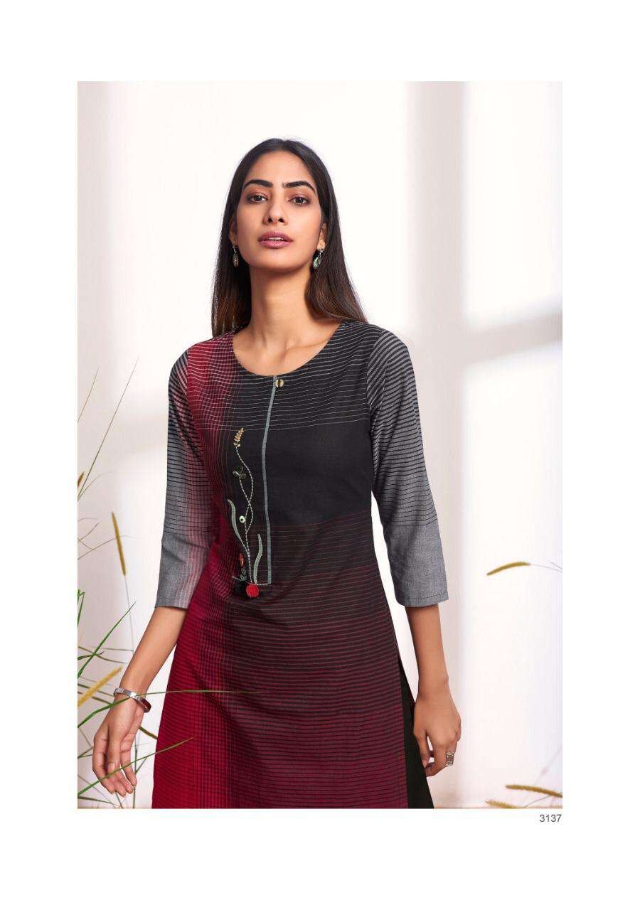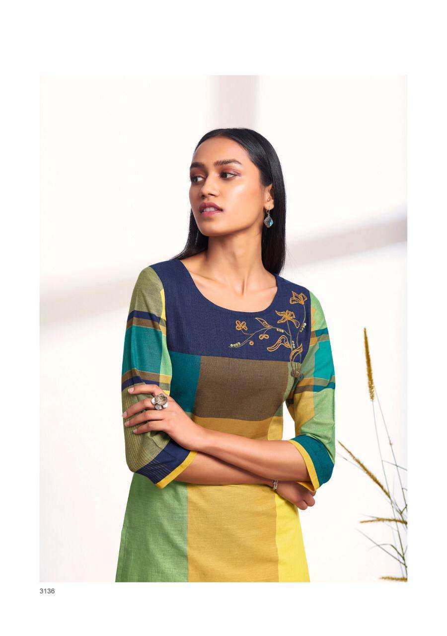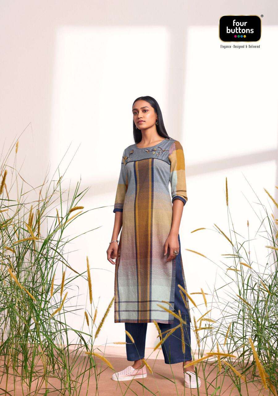 KURTI - 100% PURE COTTON WEAVING PLACEMENT CHECKS WITH EMBROIDERIES AND APPLIQUES. |
