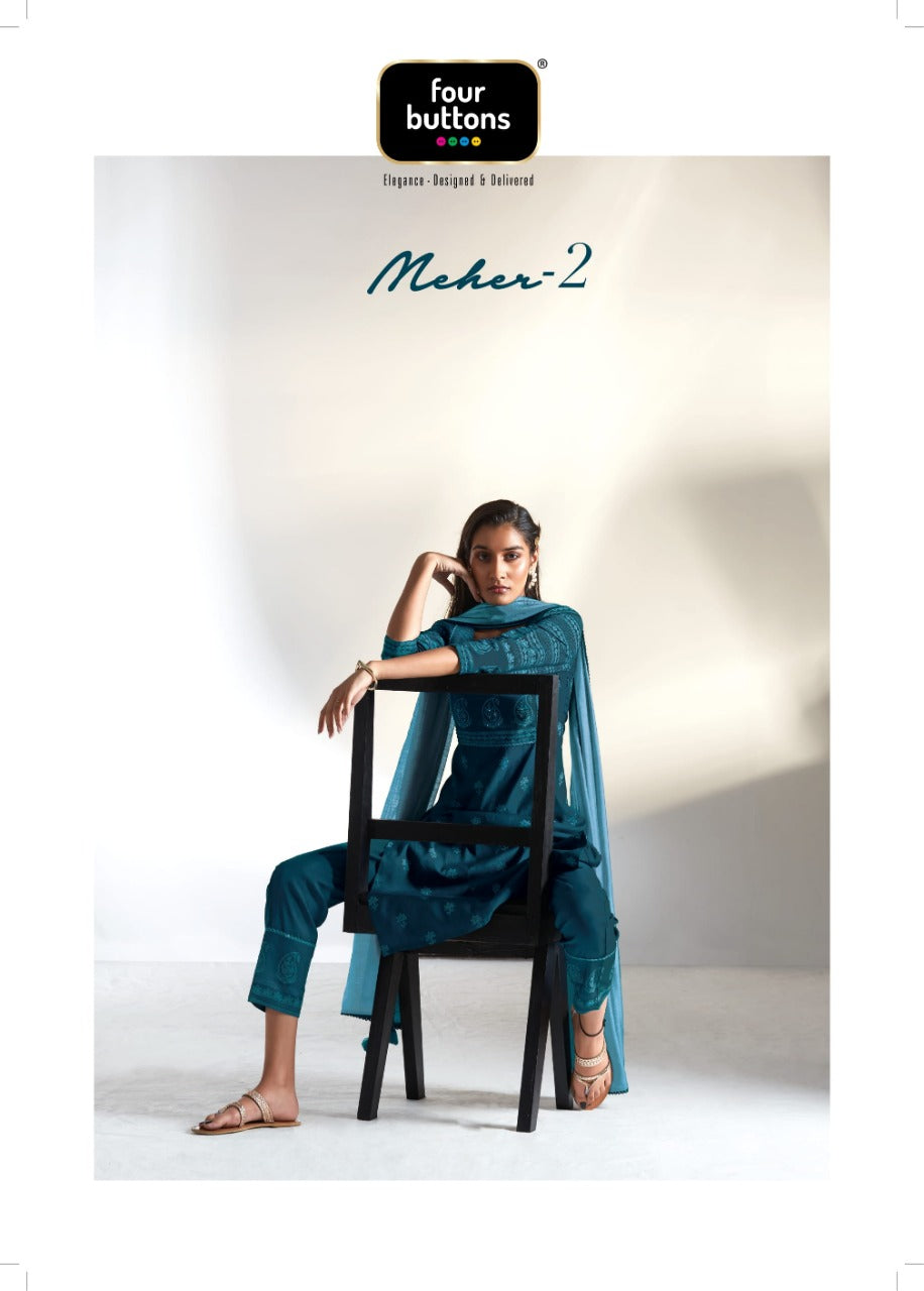 Four Buttons Meher Vol 2 Viscose Silk With Beautiful Work Stylish Designer Attractive Look Kurti