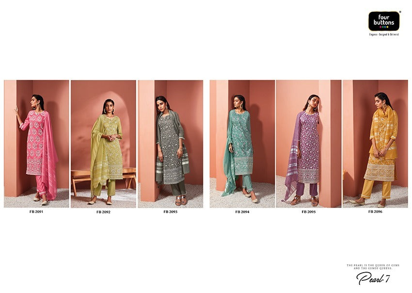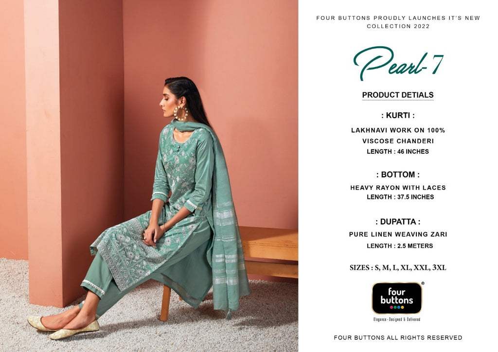 Four Buttons Pearl Vol 7 Viscose With Lucknowi Work Stylish Designer Casual Wear Kurti