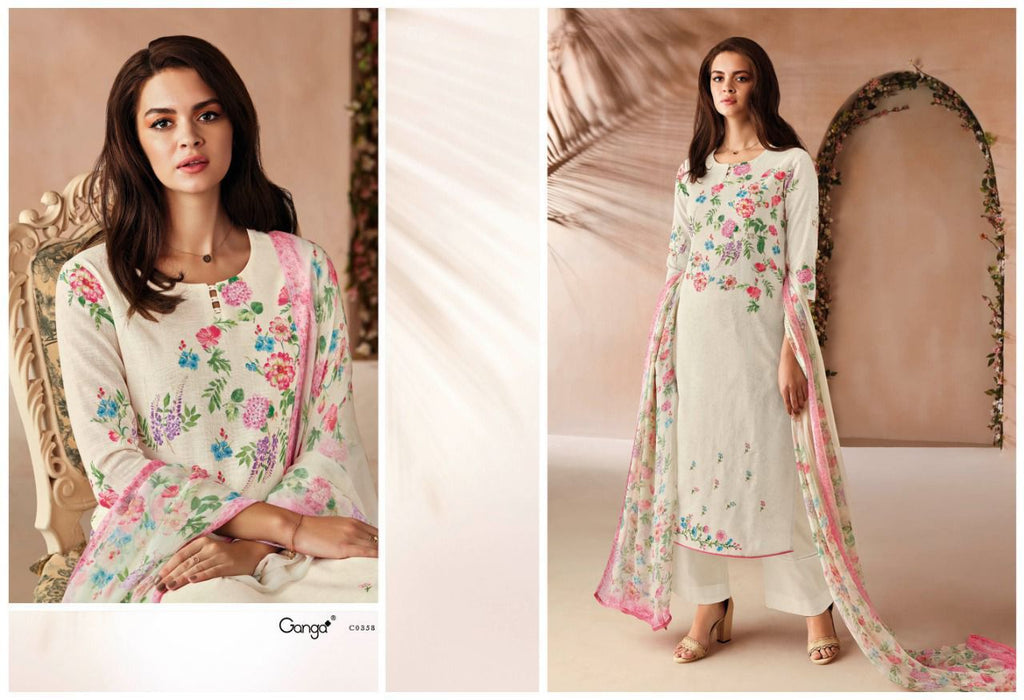 Ganga Dno 0355 To 0360 Pure cotton Printed With Heavy Embroidery work Stylish Designer Salwar Kameez