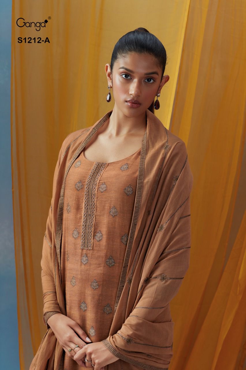 Ganga Dno 1212 A Woven Silk With Beautiful Fancy Work Stylish Designer Casual Wear Salwar Suit