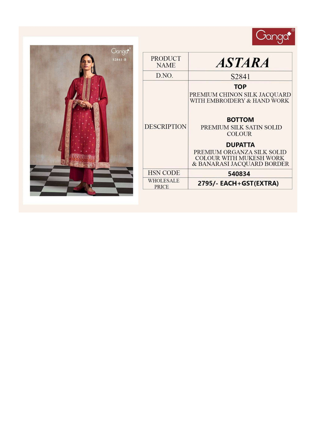 Ganga Fashion Astara 2841 Chinon Embroidery Handwork Festival Wear Salwar Suit