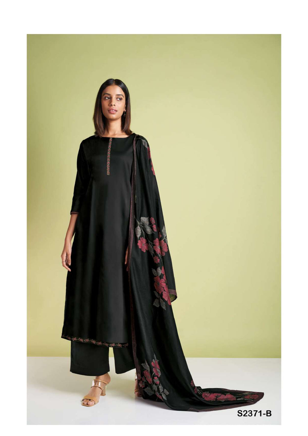 Top:premium cotton silk solid with printed neck and daman border