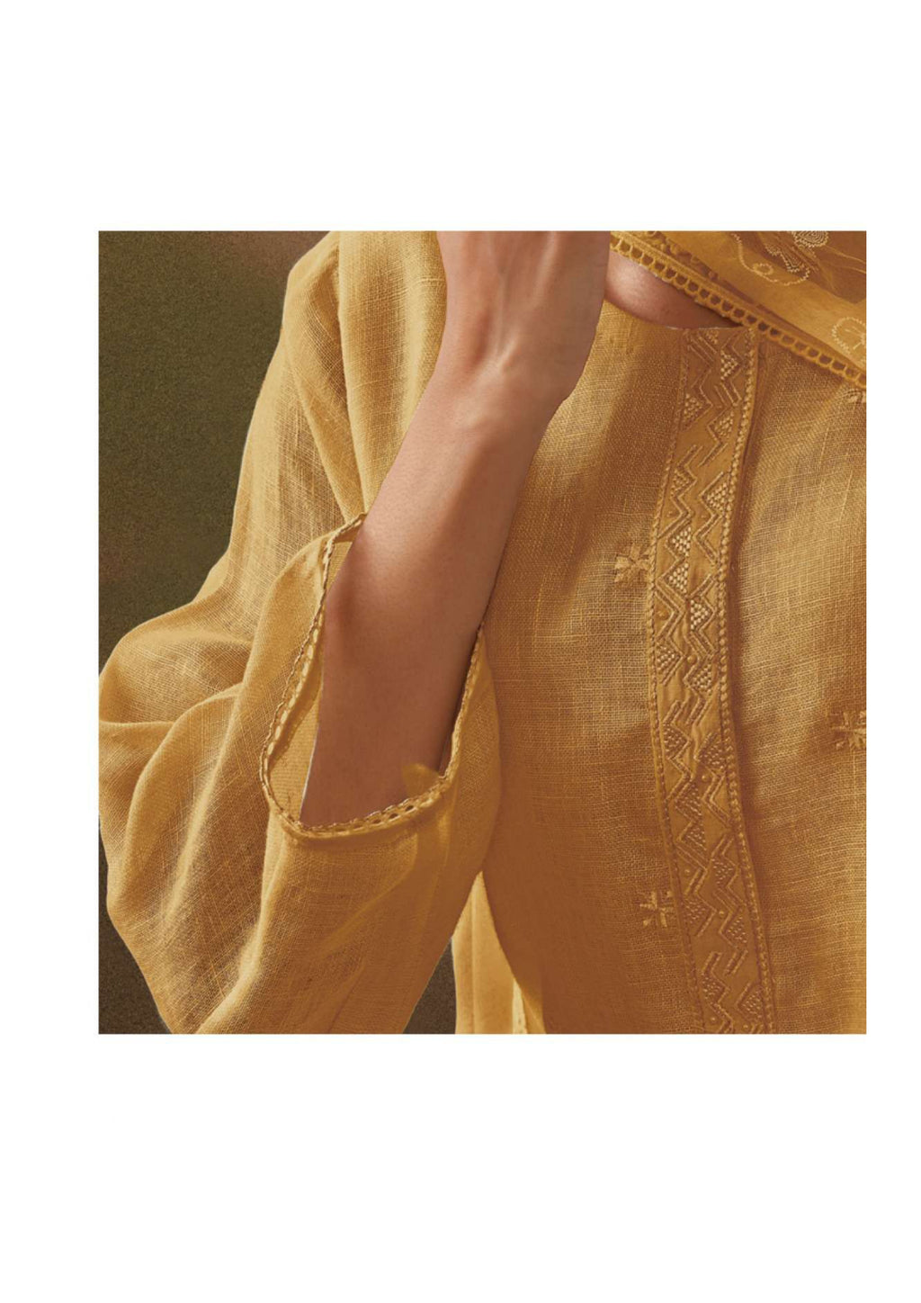 Top:premium cotton linen solid with embroidery and handwork