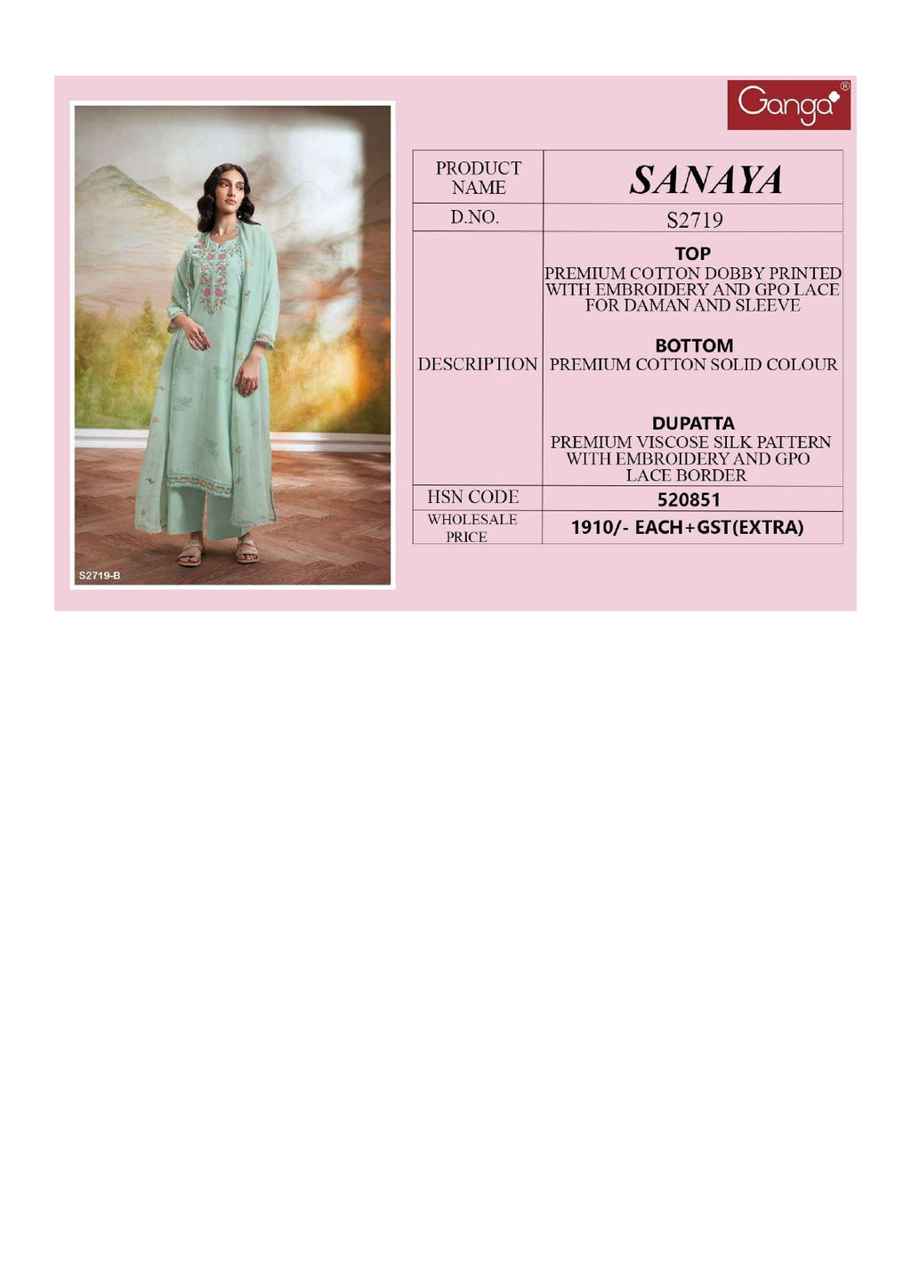 Ganga Fashion Sanaya 2719 Cotton Dobby Printed Designer Salwar Suit