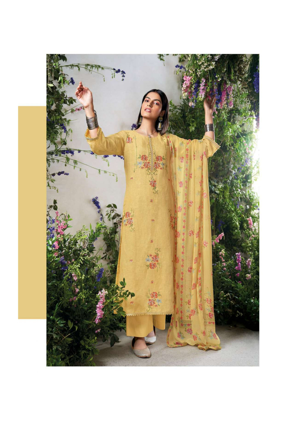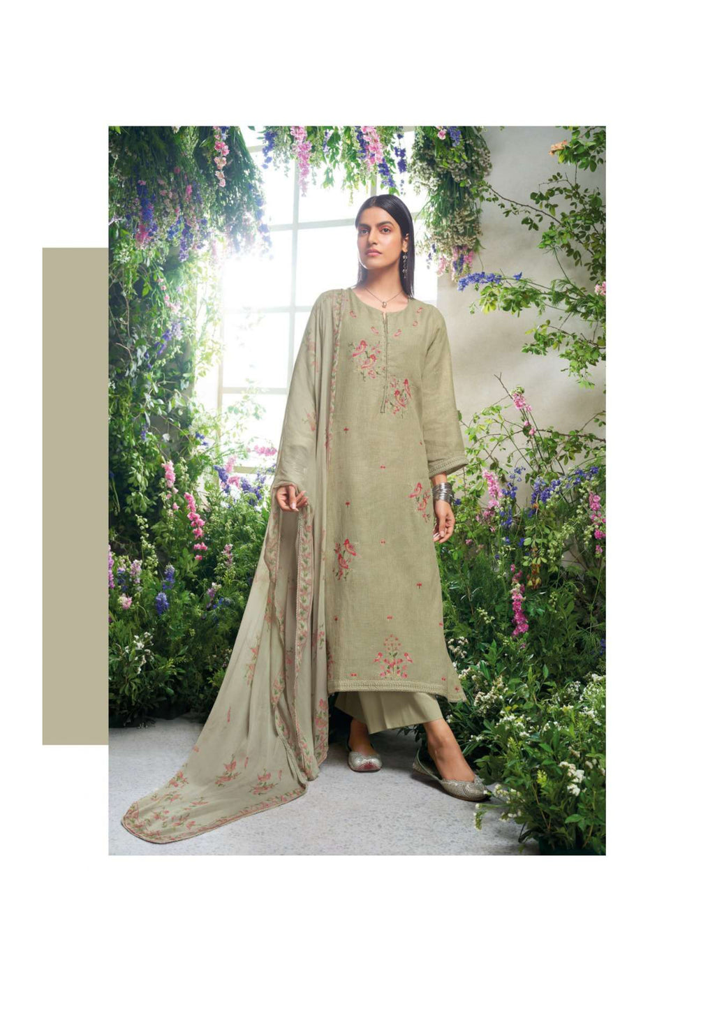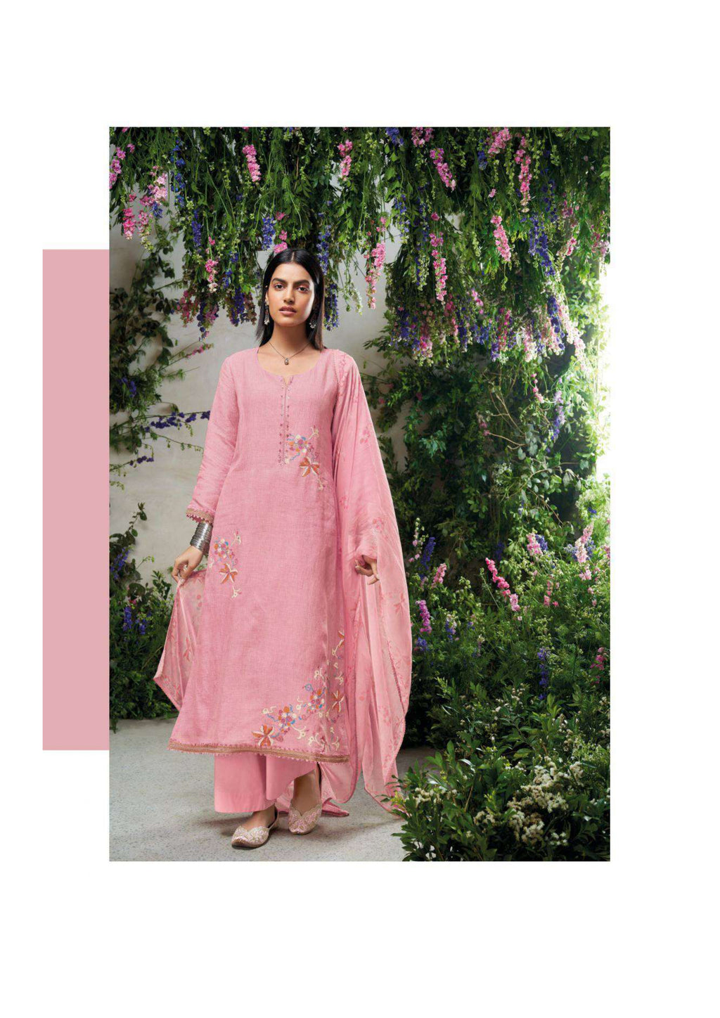 Top: premium cotton linen printed with embroidery and cotton lace for neck and daman Bottom: premium cotton solid colour Dupatta: pure chiffon printed |
