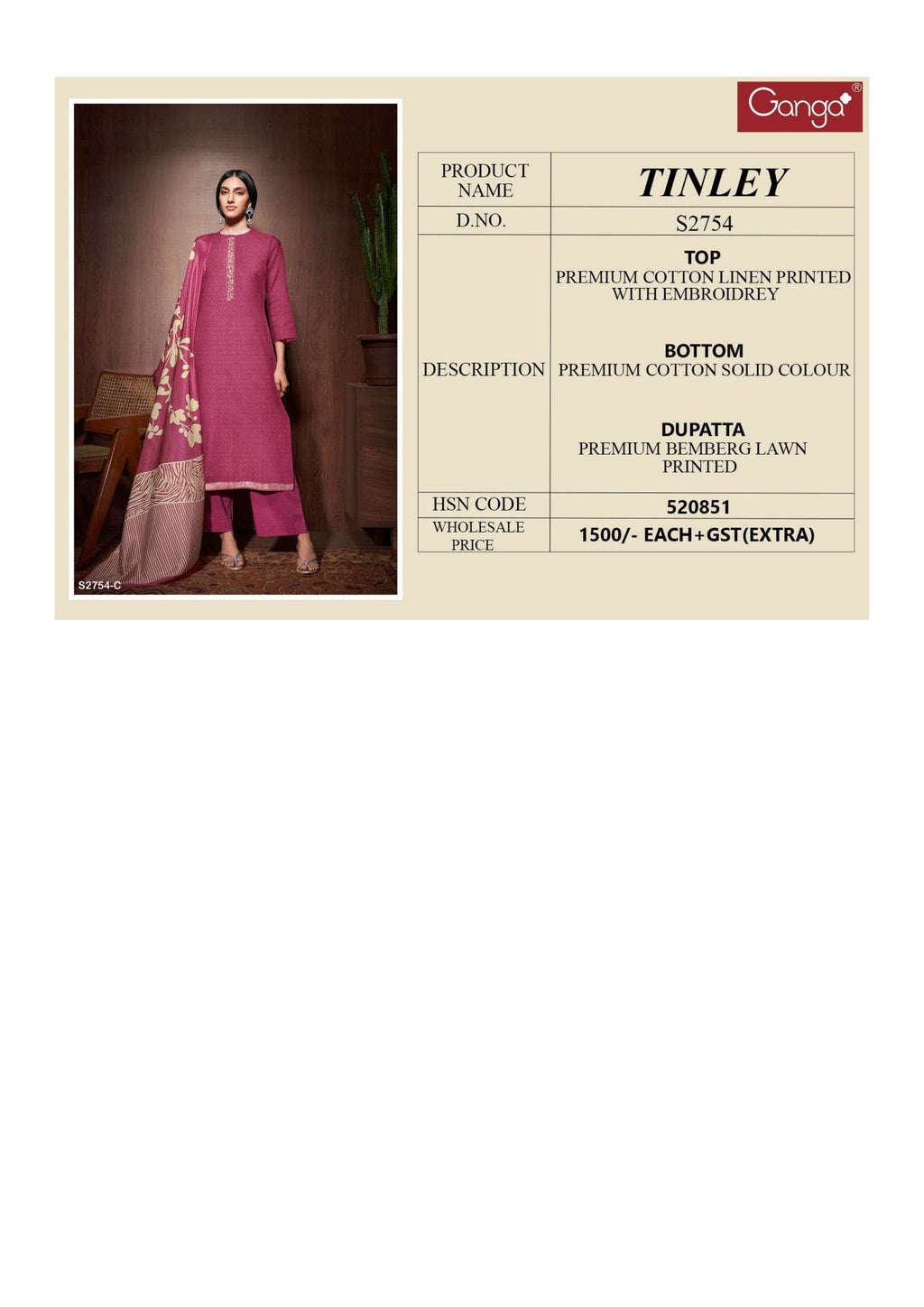 Ganga Fashion Tinley 2754 Cotton Linen Printed Embroidery Designer Fancy Salwar Kameez
