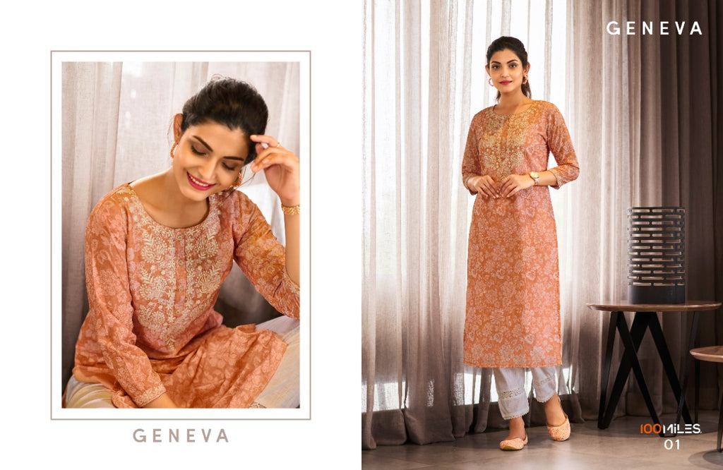 100 Mills Geneva Georgette With Chikankari Printed work Stylisj Designer Casual Wear Fancy Kurti