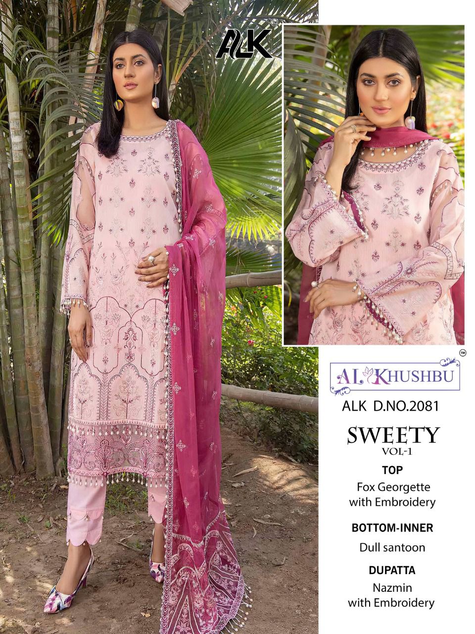 Al Khushbu Dno 2081 Sweety Vol 1 Georgette With Beautiful Heavy Embroidery Work Stylish Designer Pakistani Salwar Kameez