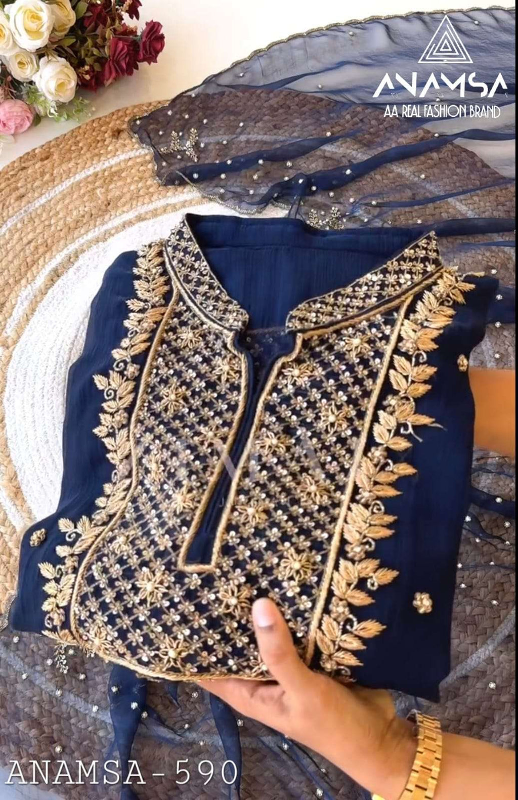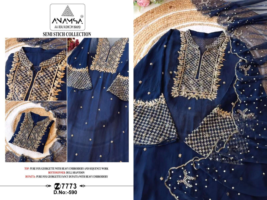 heavy pure fox georgette with heavy embroidered with sequence work very beautiful semi stitched outfit unstitched heavy dull shantoon bottom very beautiful pure georgette heavy fancy dupatta with heavy embroidery inner- dull shantoon |