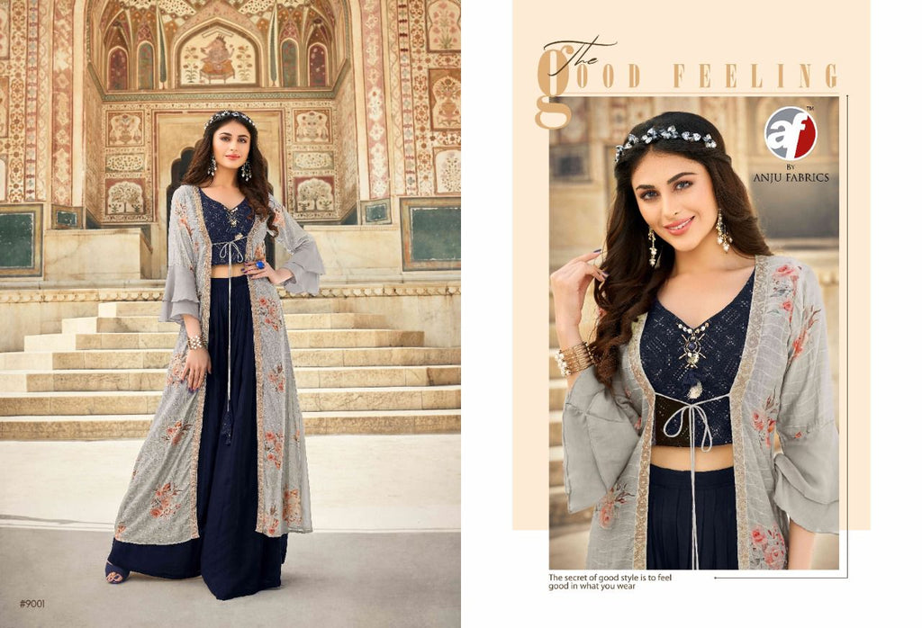 Anju Fabrics Occasion Georgette Party Wear Stylish Kurtis With Koti & Bottom