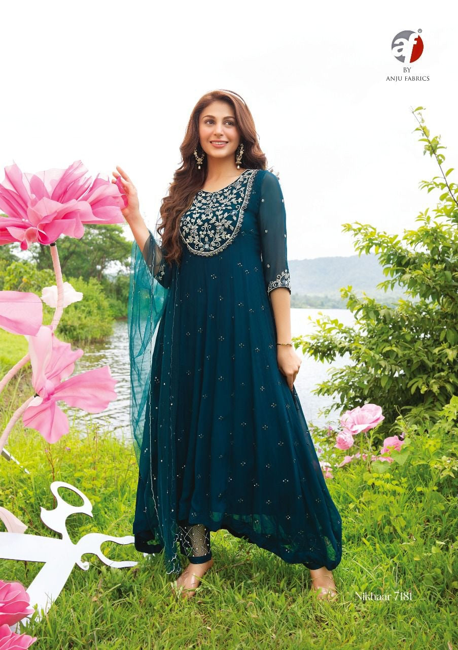Anju Fabs Nikhaar Georgette With Beautiful Work Stylish Designer Attractive Look Fancy Kurti