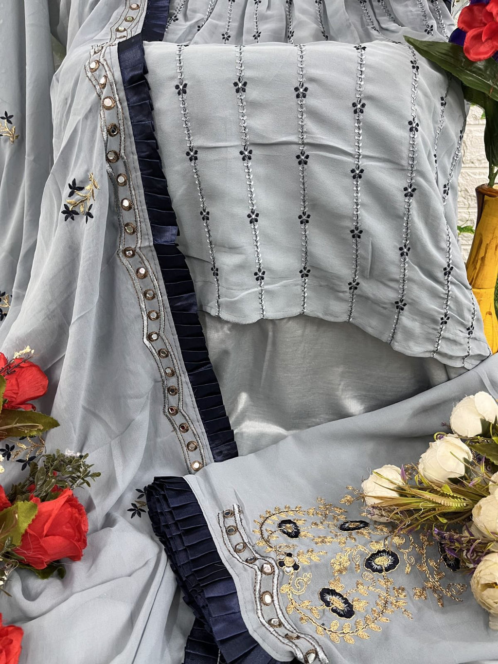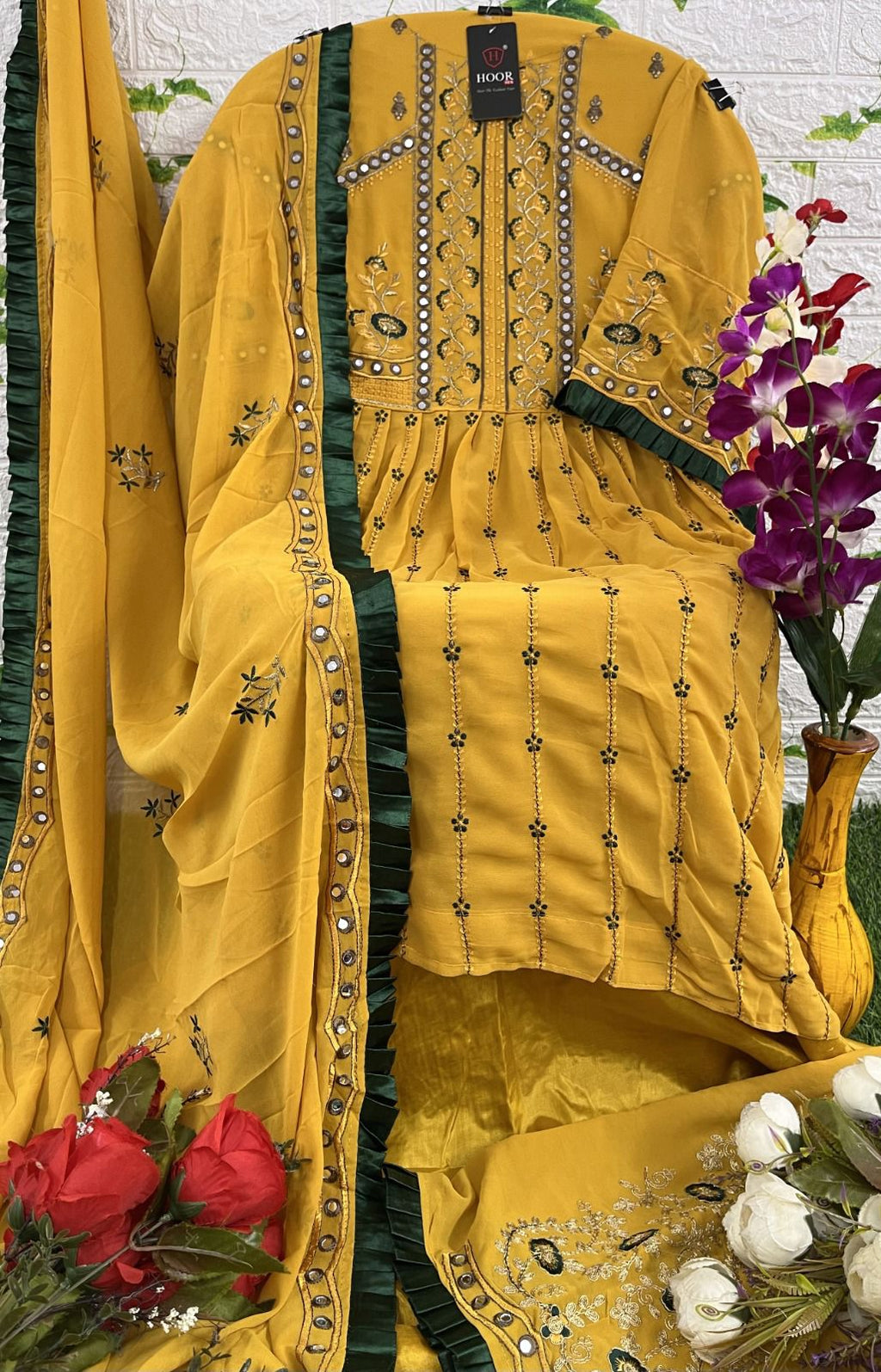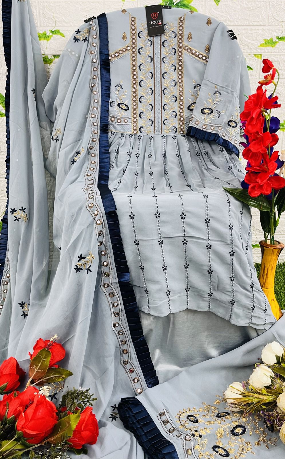 Top : FOX GEORGETTE Bottom : Fox Georgette inner : SANTOON Dupatta : Fox Georgette |