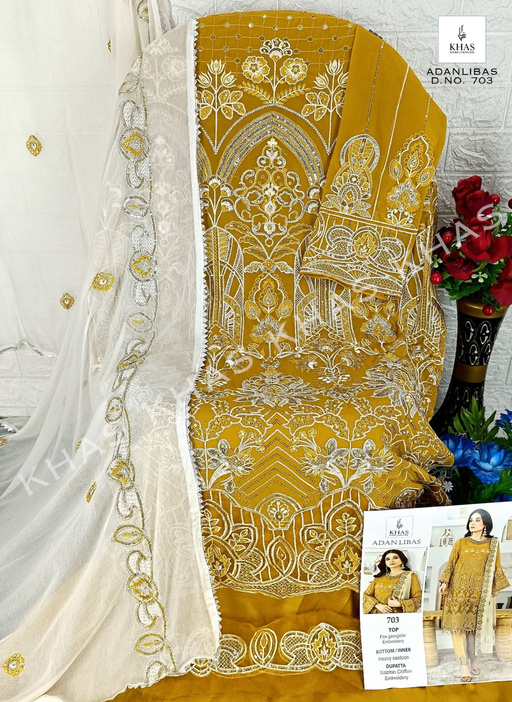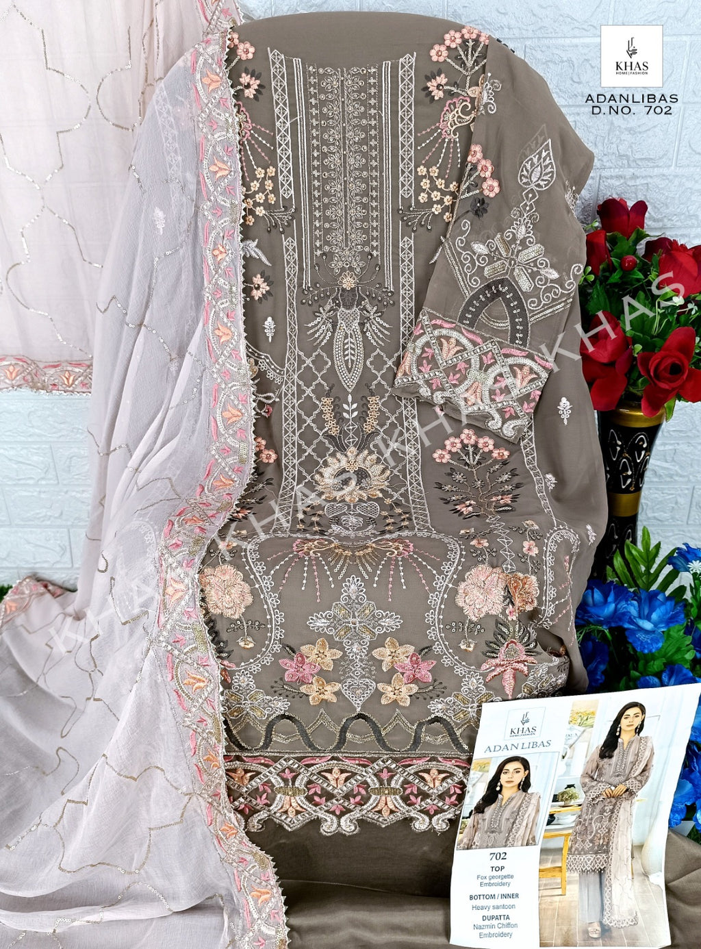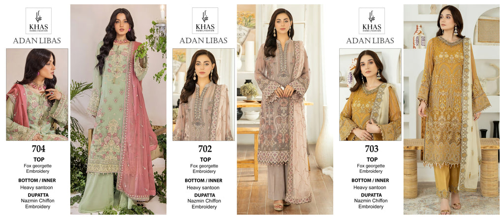 Khas Fashion Adan Libas Georgette Heavy Embroidery With Pakistani Suit Collection
