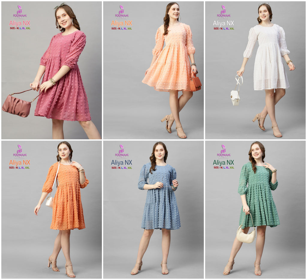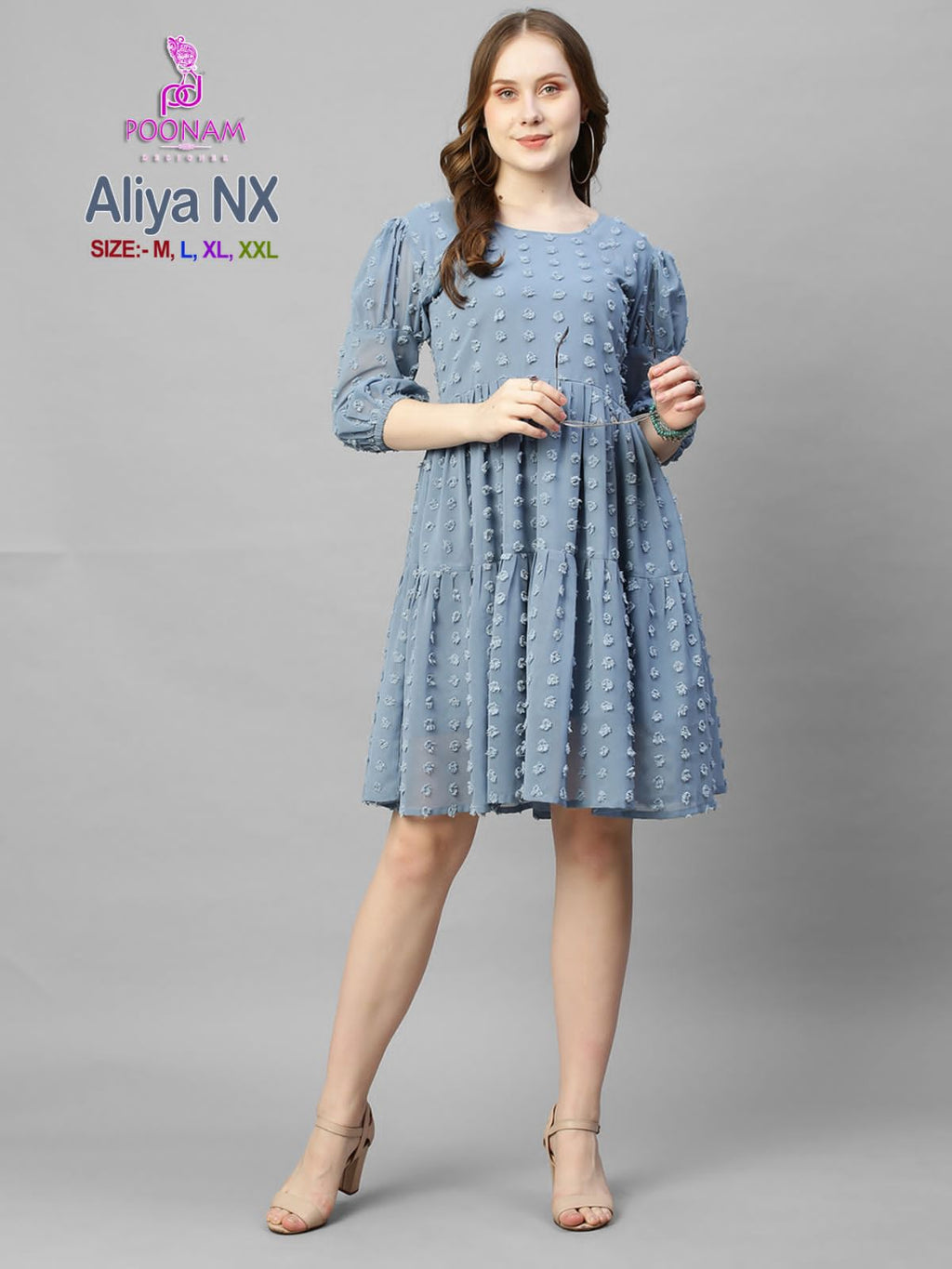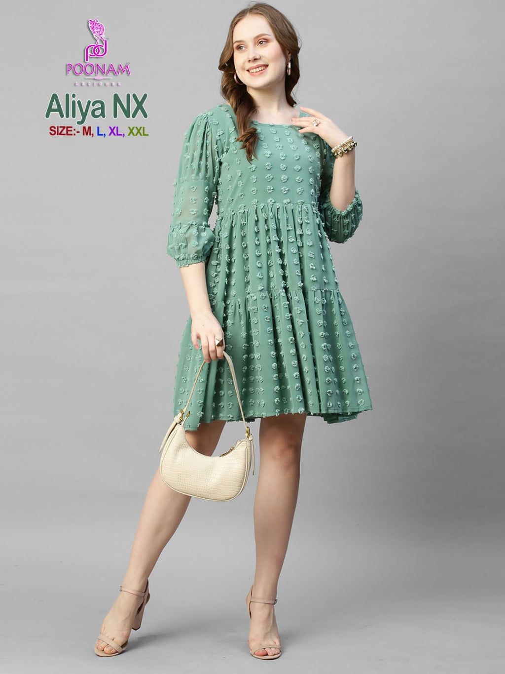 Poonam Designer Aliya Nx Georgette Butti Fabric Fancy Aliya Cut Short Gowns
