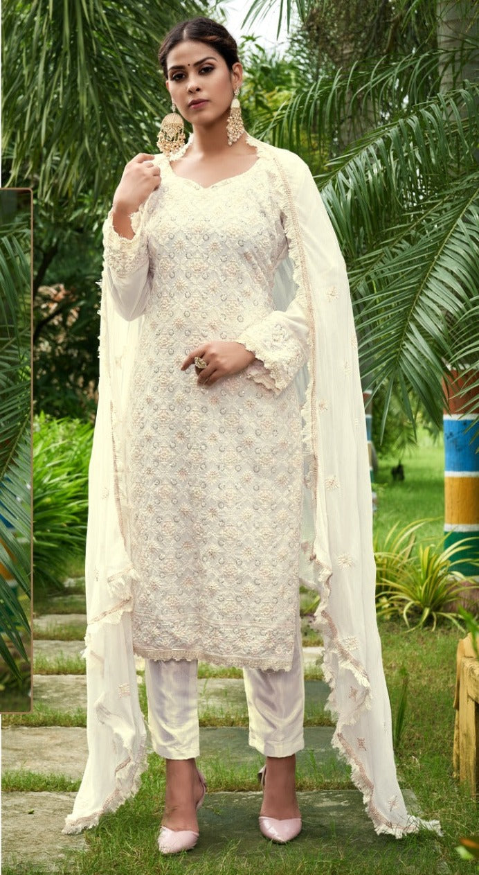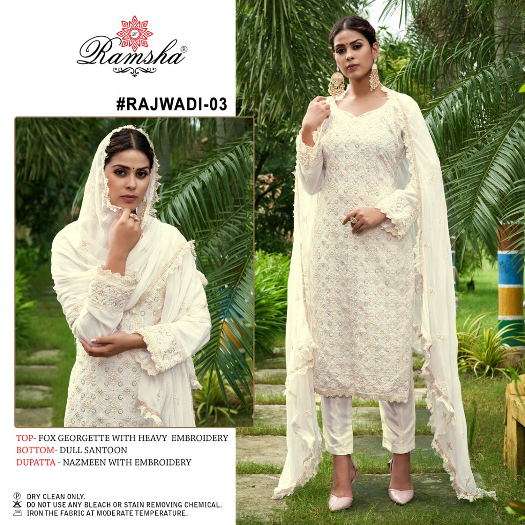 Ramsha Rajwadi Georgette With Heavy Embroidery Work Stylish Designer Casual Wear Salwar Kameez