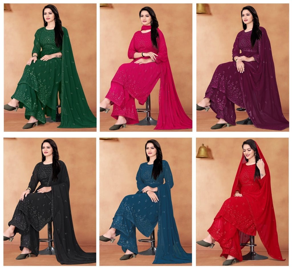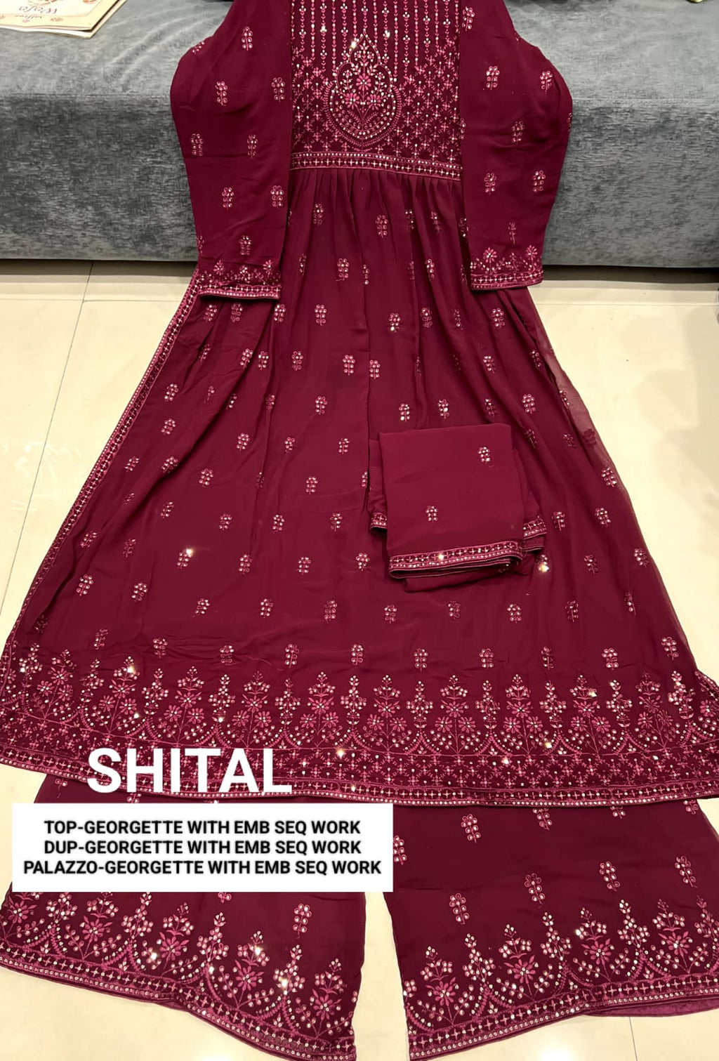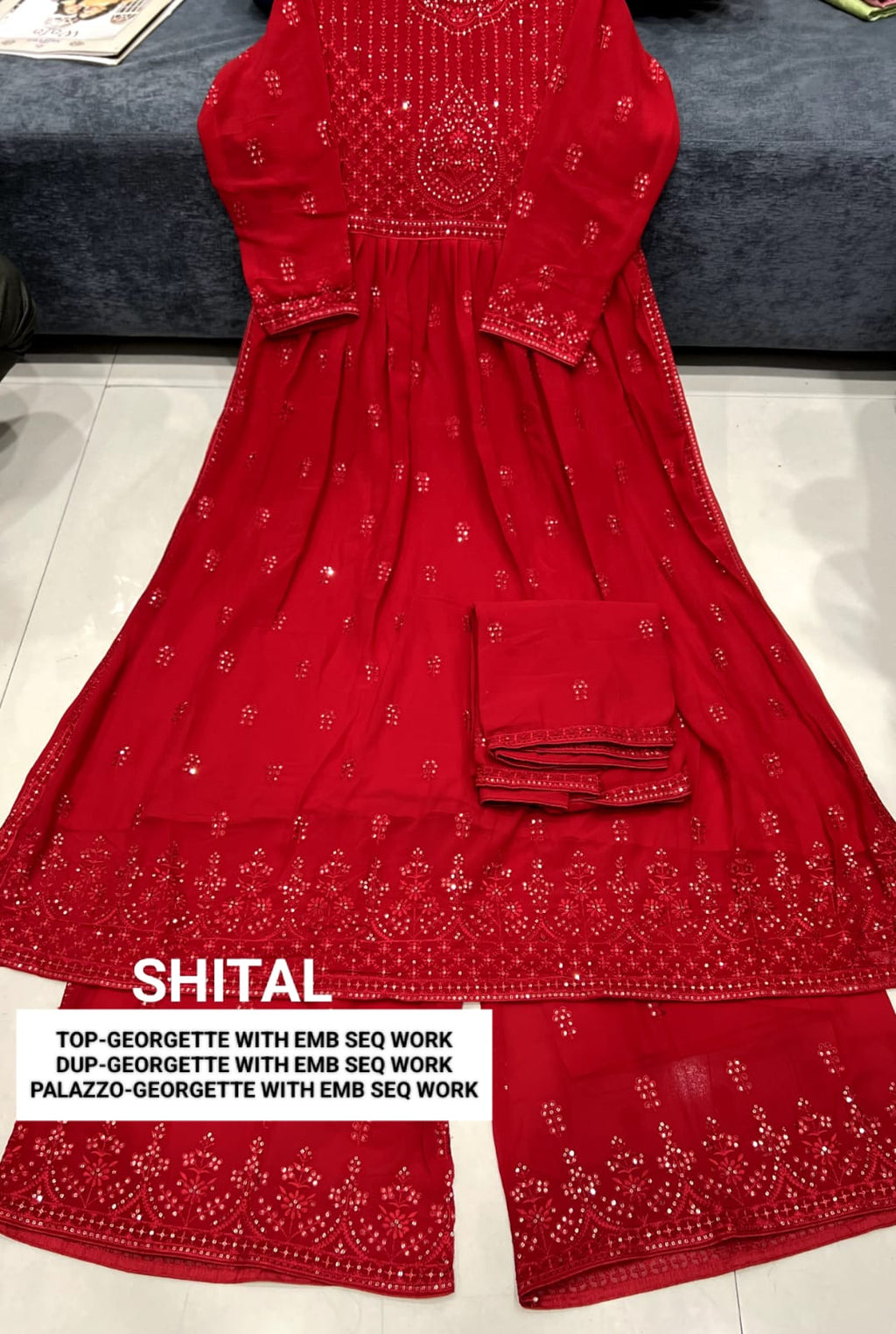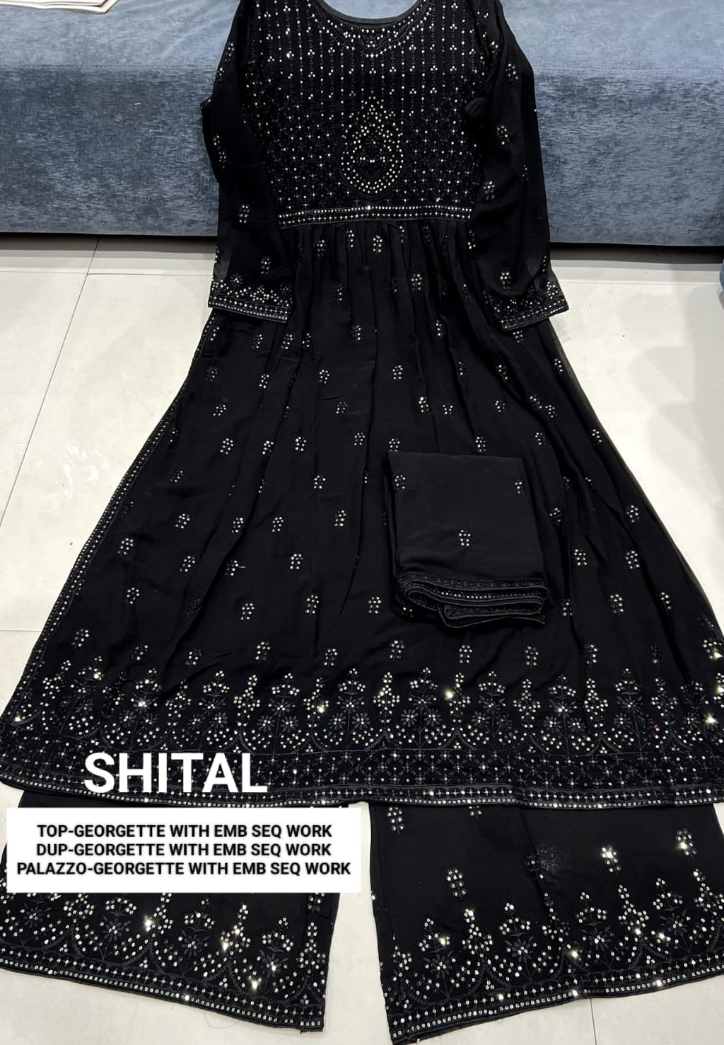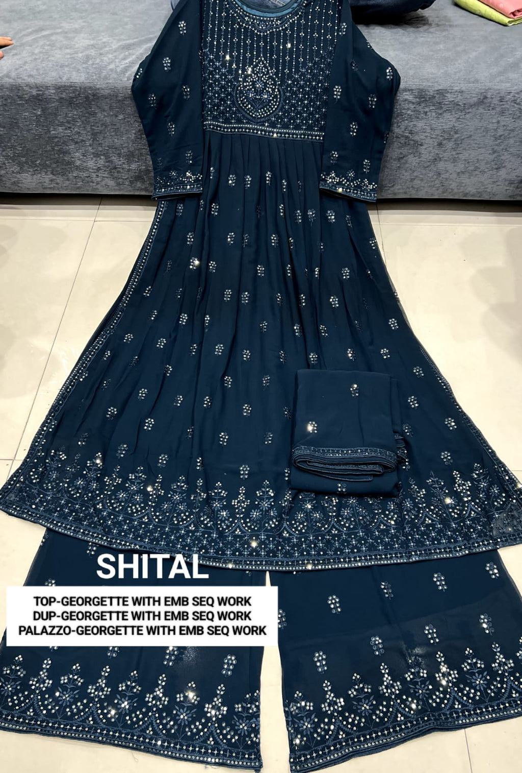 Top:- Georgette With Emb Seq Work Palazzo:- Georgette With Emb Deq Work Dupatta:- Georgette With Emb Seq Work |