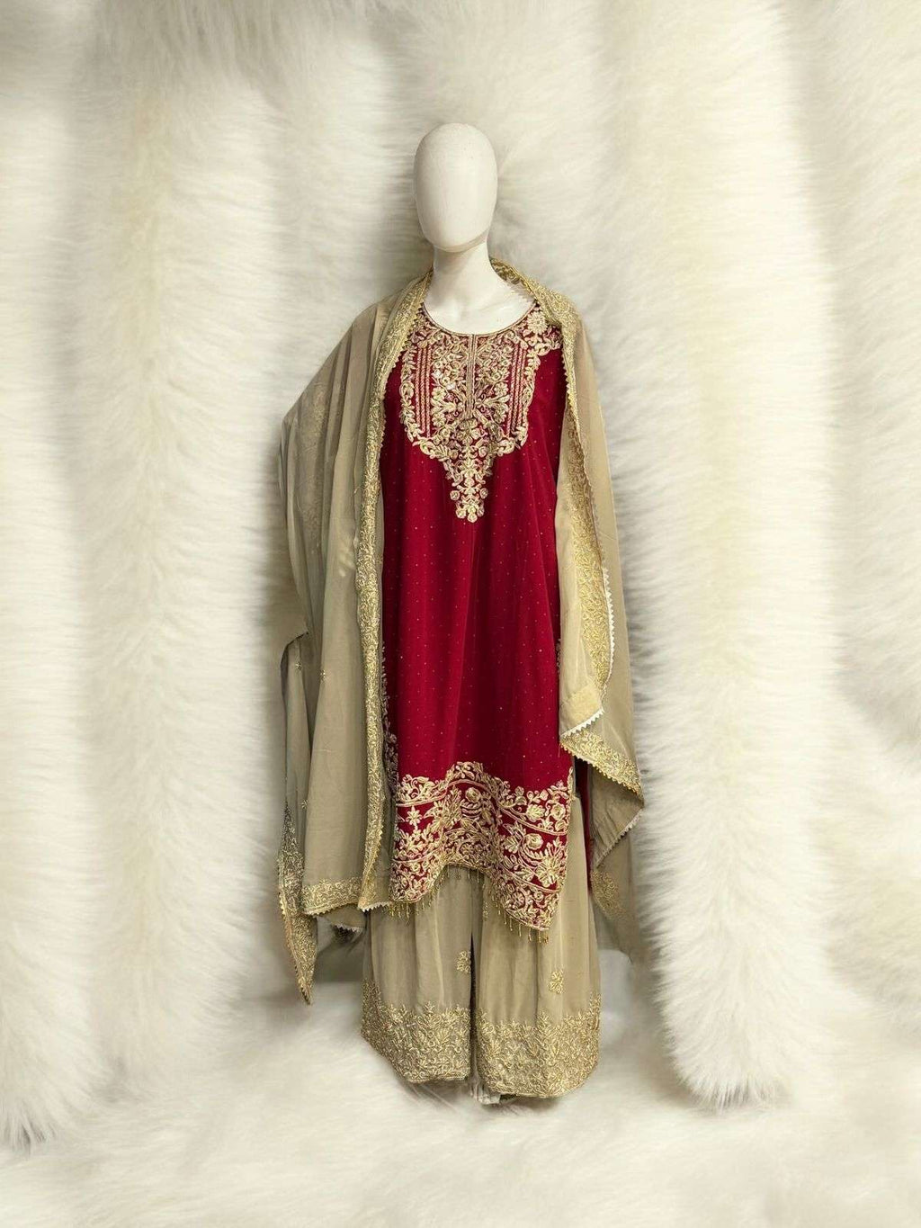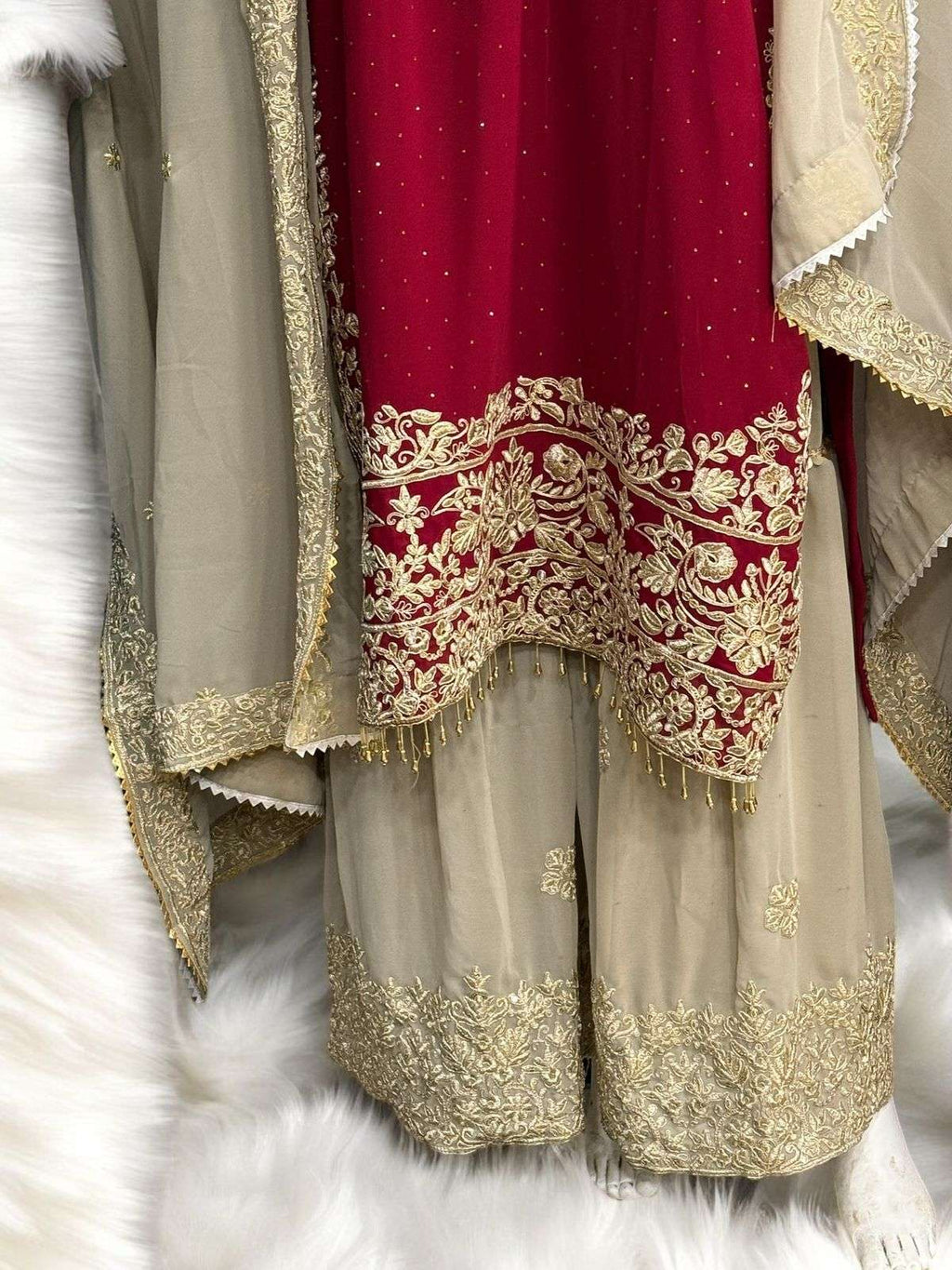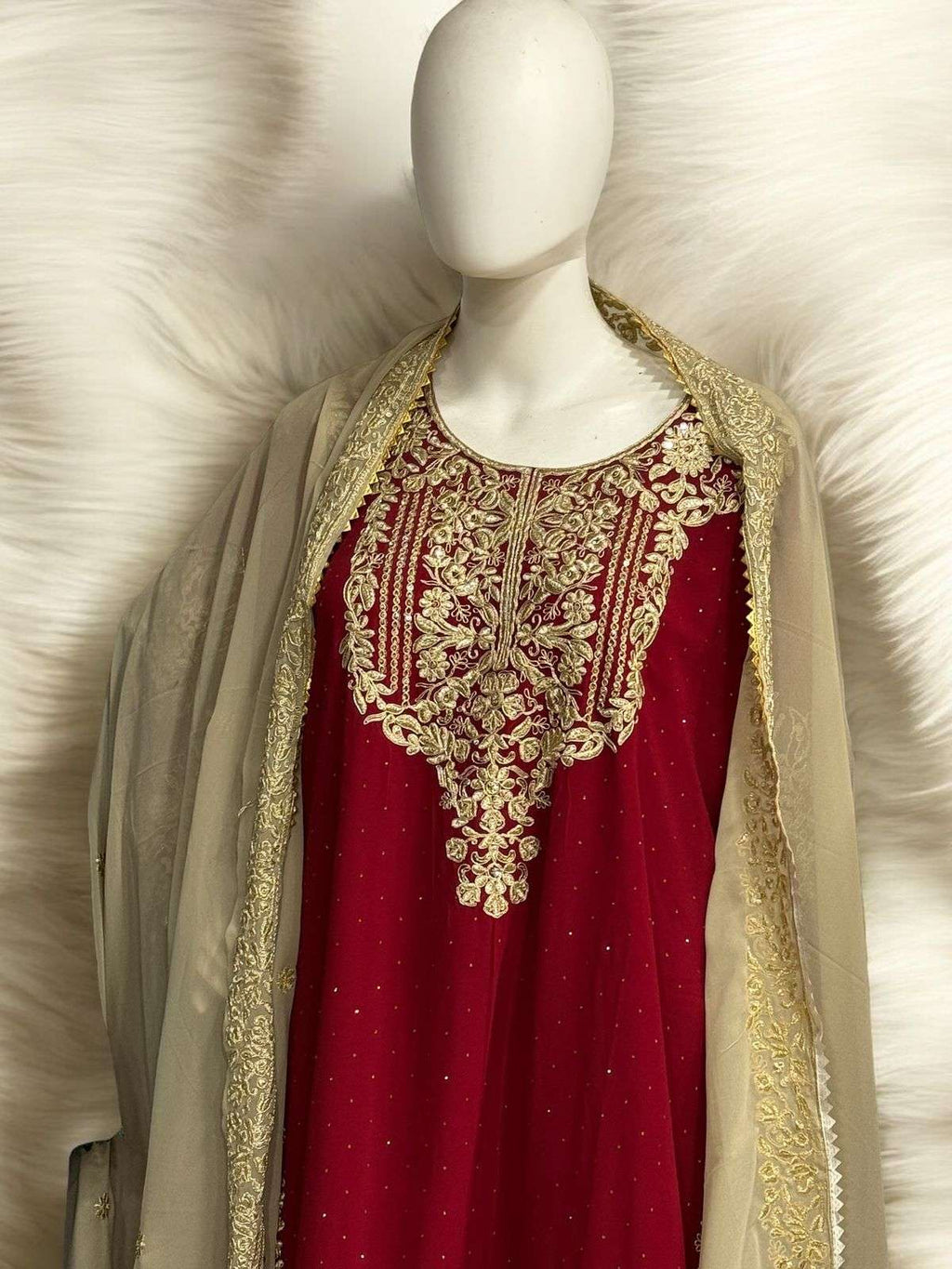 geogette semi stitched outfit with beautiful embroidered coding work and diamond machine pasting work done |