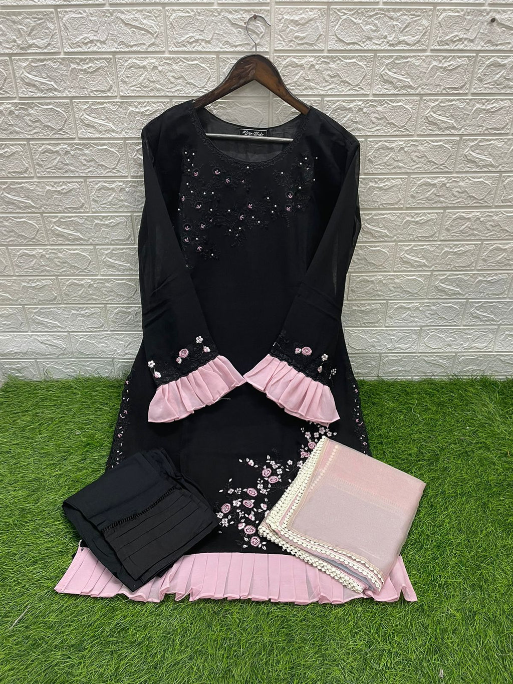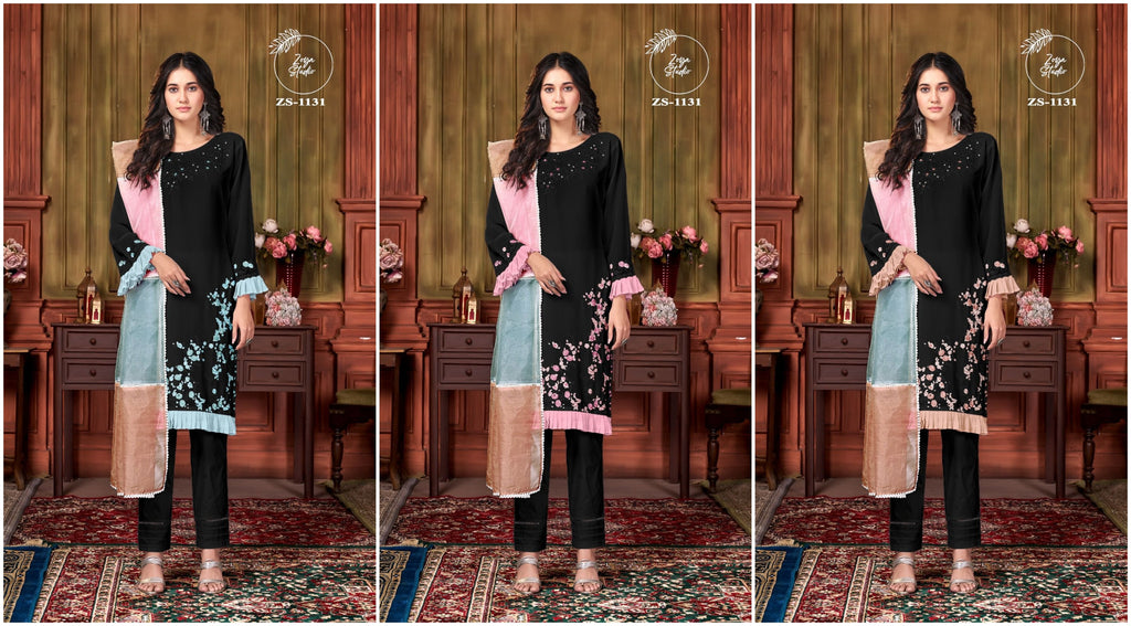 Top:- Georgotte Inner:- Santoon Dupatta:- Designer Organza Pant :- Cotton Strachble |
