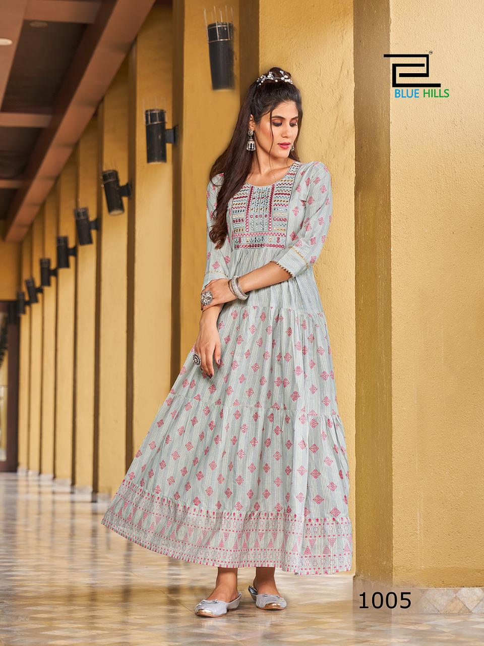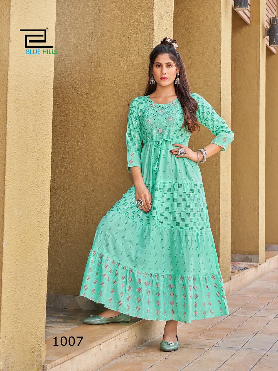 Blue Hills Sizzling Pure Cotton With Heavy Embroidery Work Stylish Designer Long Gown