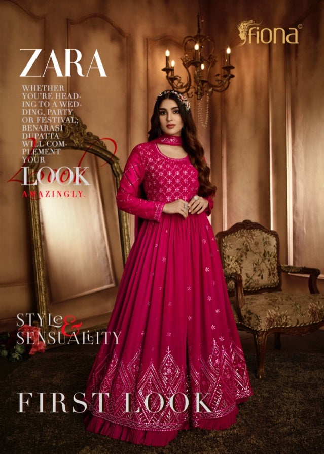 Fiona Zara First Look Georgette With Beautiful Embroidery Work Stylish Designer Festive Wear Attractive Look Long Gown