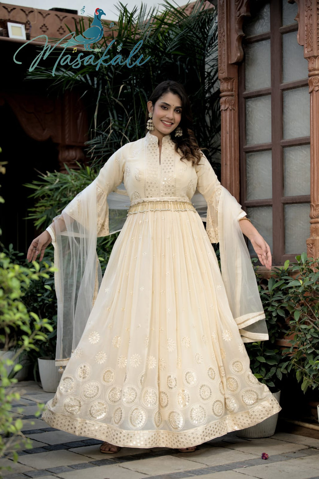 Gown :- Pure GEORGETTE with 4 SEQUNCE EMBROIDERY WORK Work :- Embroidery Work Inner :- Full inner In all Designe With cancan Duppta:- soft net with Designer Belt |