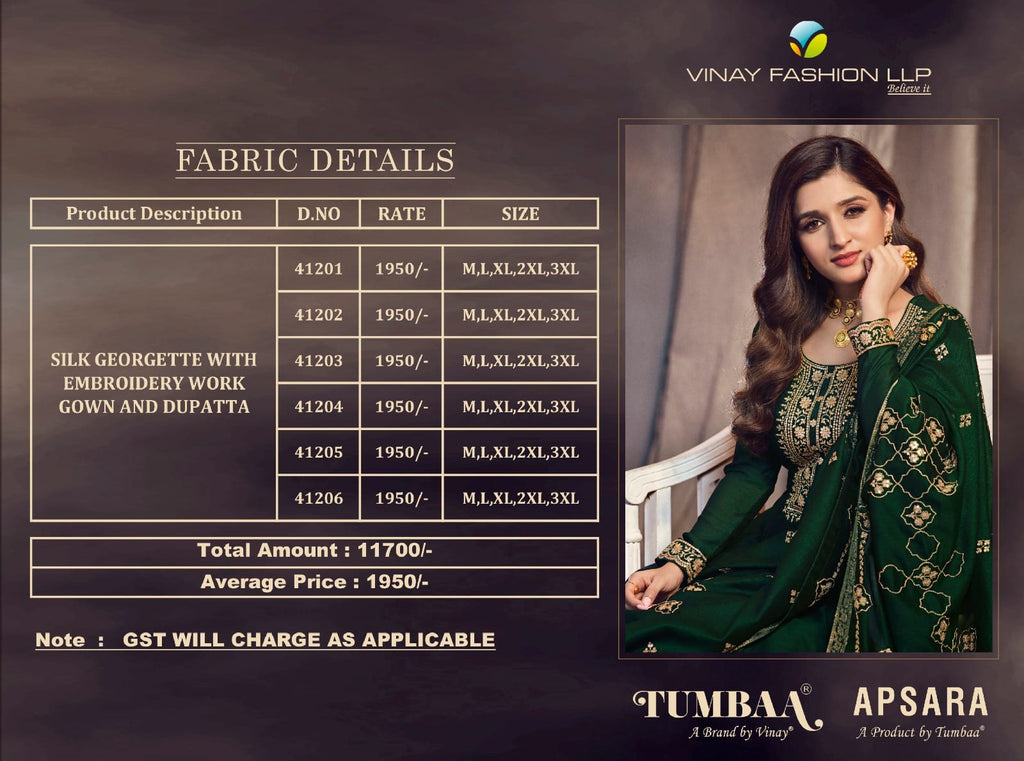 Vinay Fashion Apsara Silk Georgette Embroidered Work Gown Collection