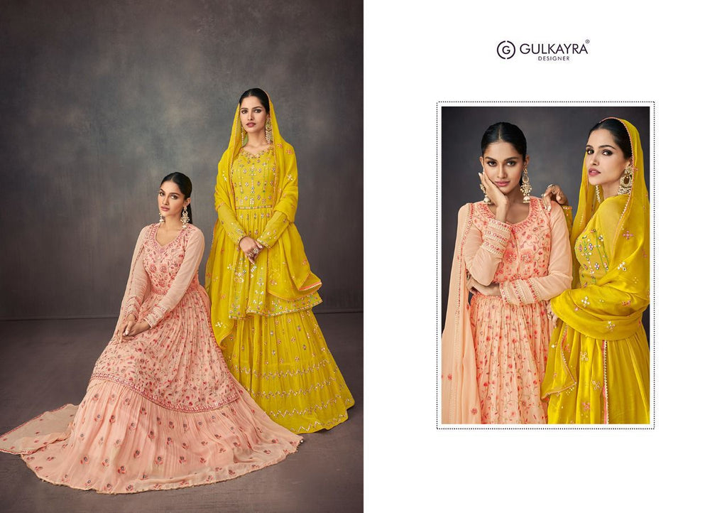 Gulkayra Bahar Real Georgette With Full Heavy Embroidery Work Stylish Designer Wedding Wear Long Sharara
