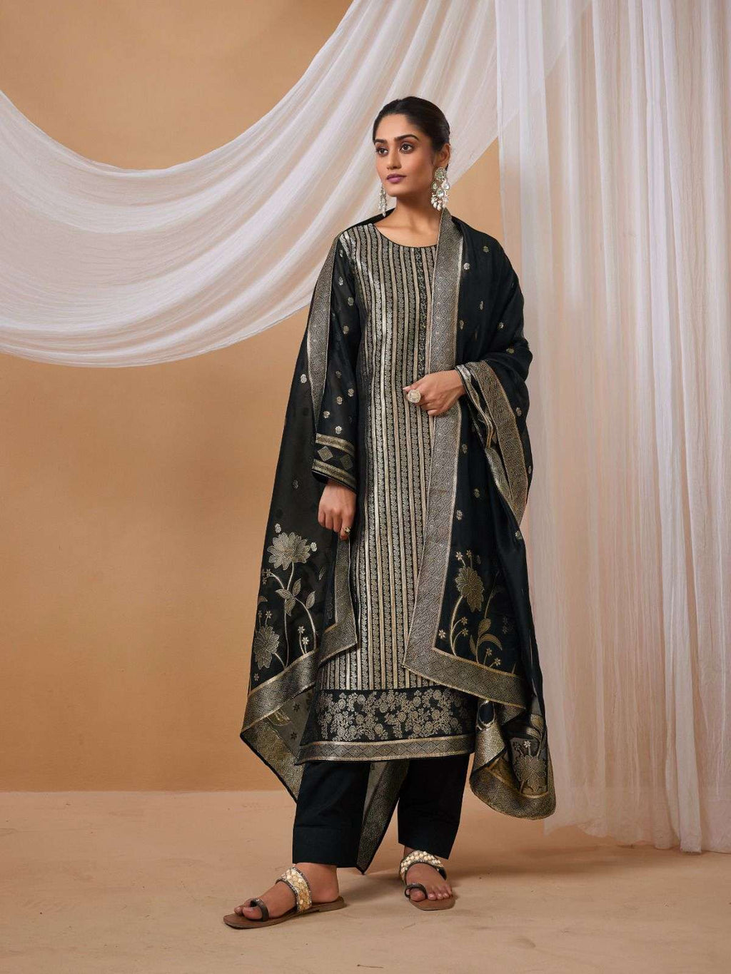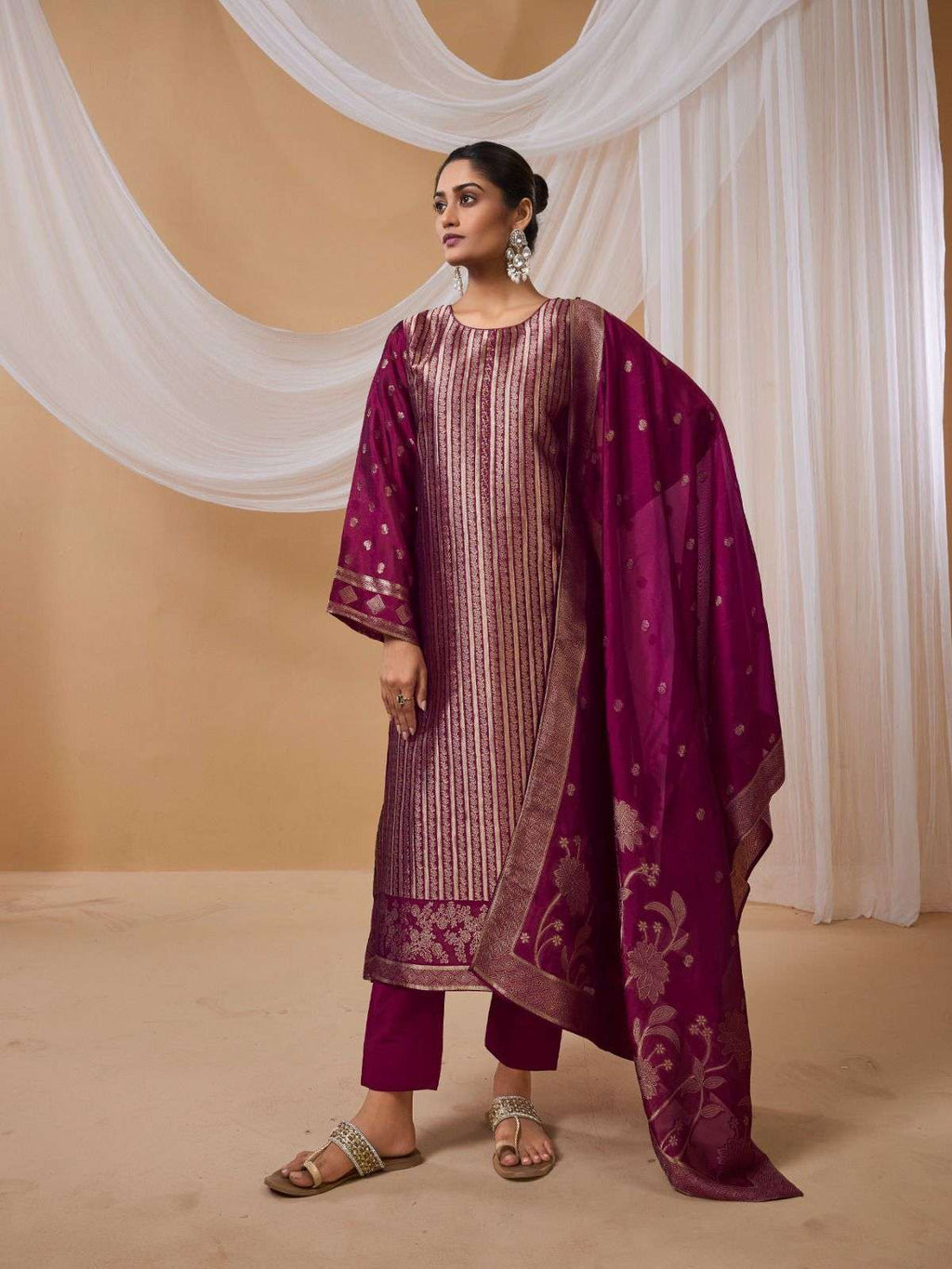 Top:-Pure Banglory Silk Jacquard With Handwork Bottom:-Pure Santoon Designs:-4 Pcs |