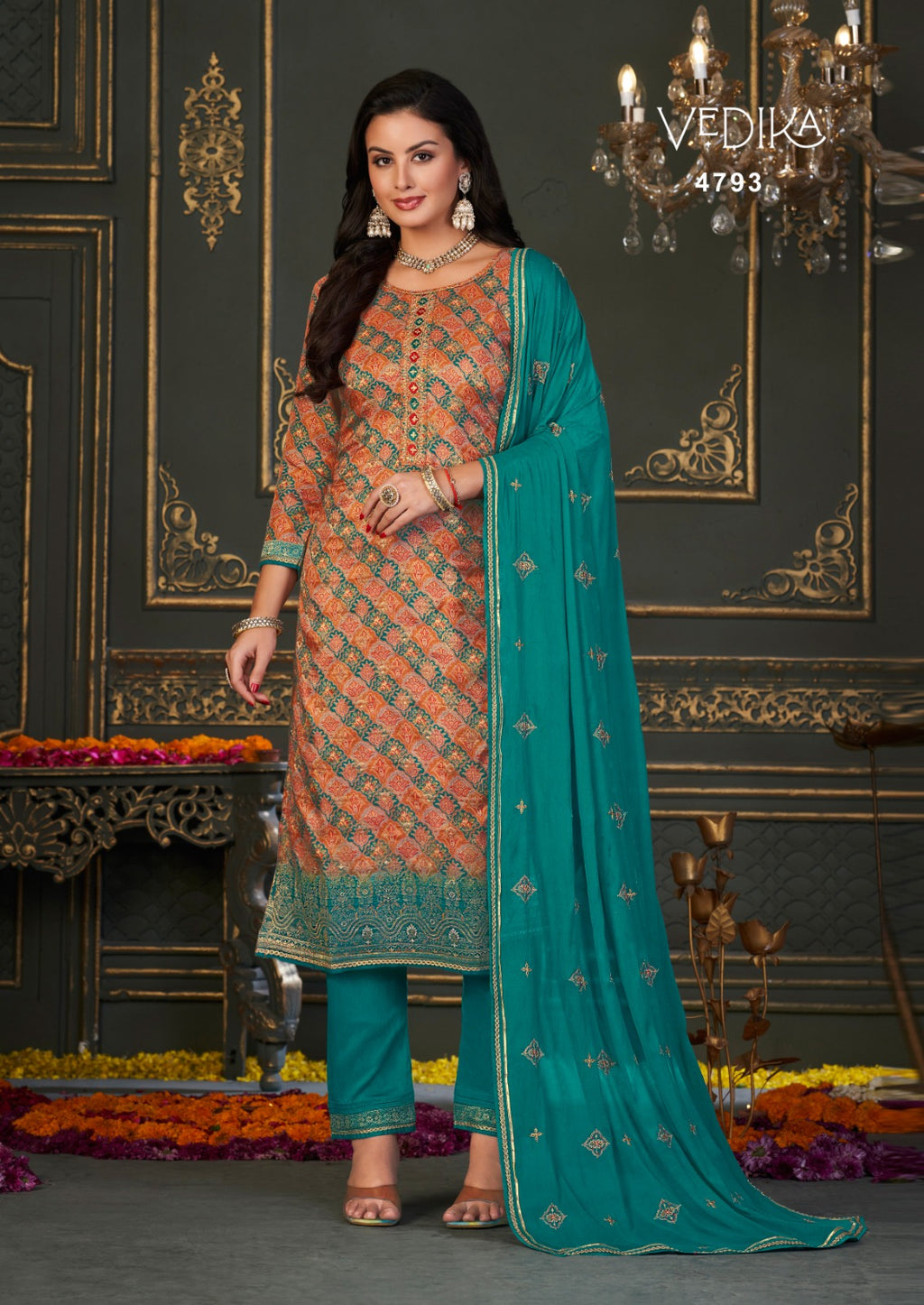 Rangoon Vedika Jacquard With Digital Printed Fancy Readymade Suit Collection