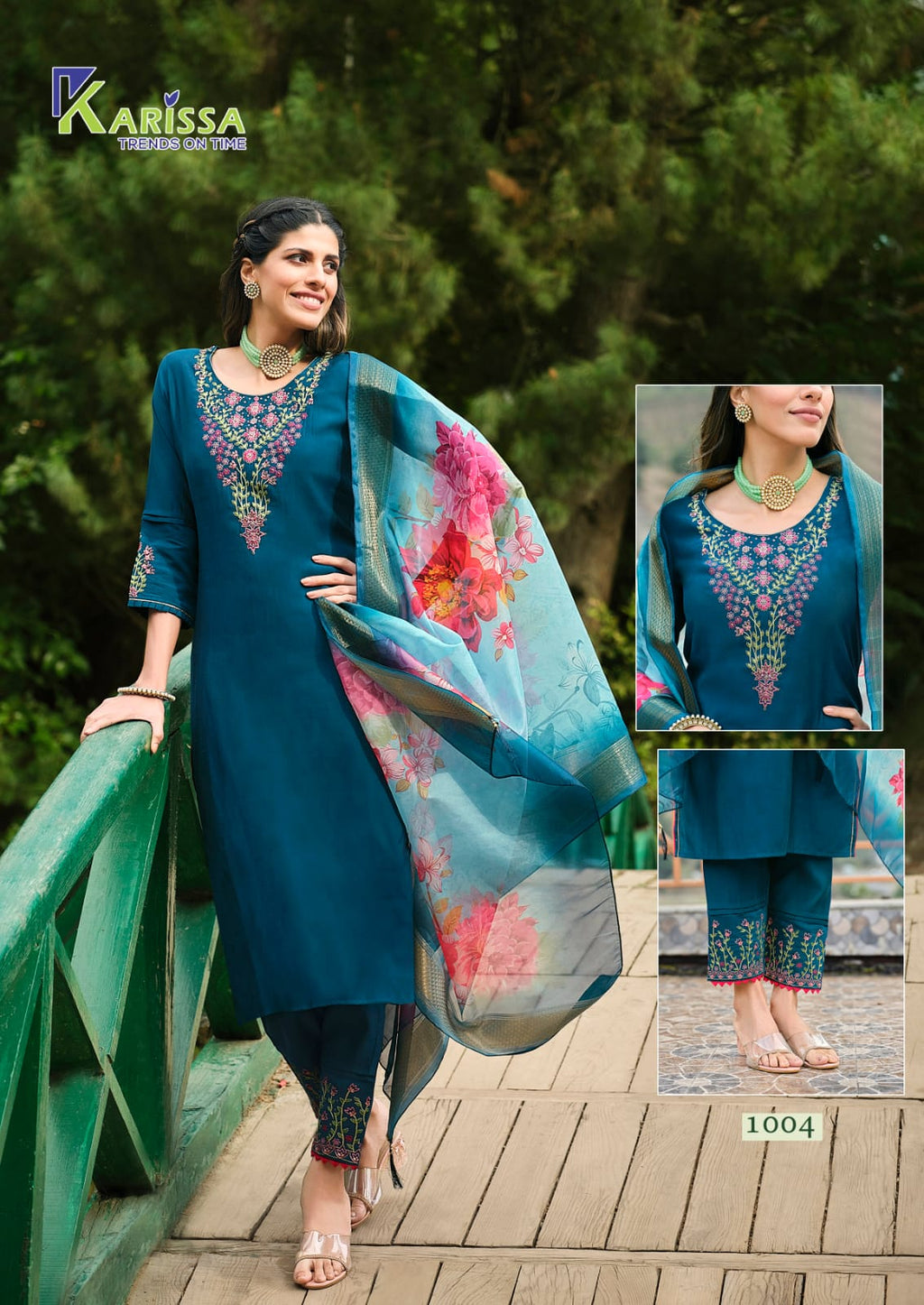 Fabric Top: Premium pure Viscose Roman SILK with full inner pure cotton mall Pant : premium pure Viscose Roman SILK with full inner pure cotton mall Dupatta: primium Taby silk digital print with jecard border Work : thread work with Handwork |