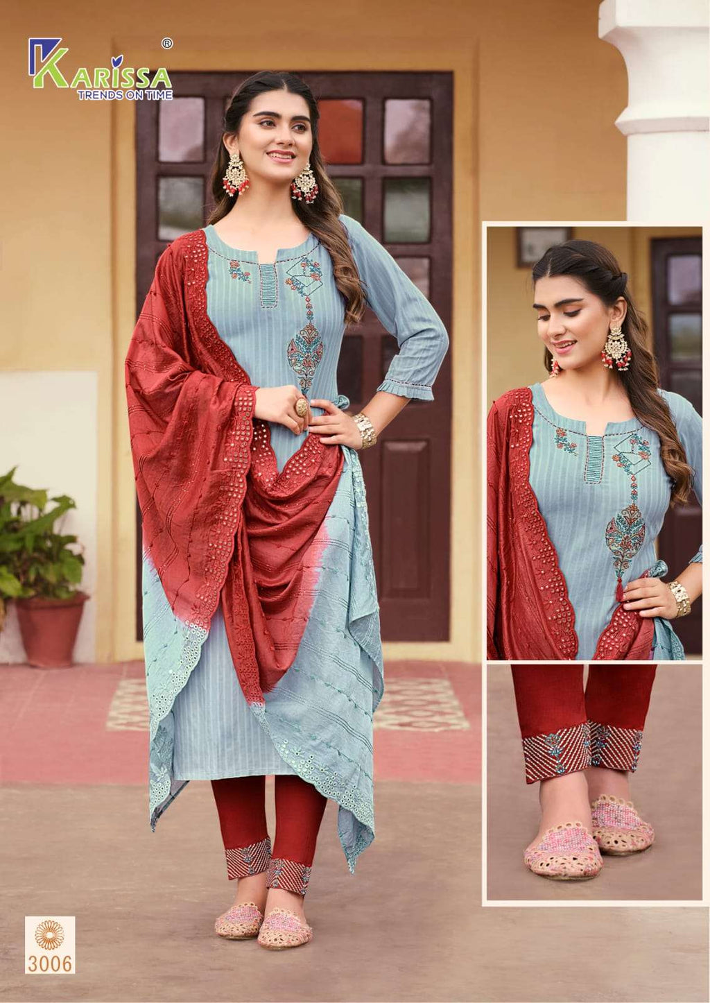 Karissa Opel Vol 3 Viscose Rayon Fancy Thered Work Designer Classy Look Top Pant With Dupatta Combo