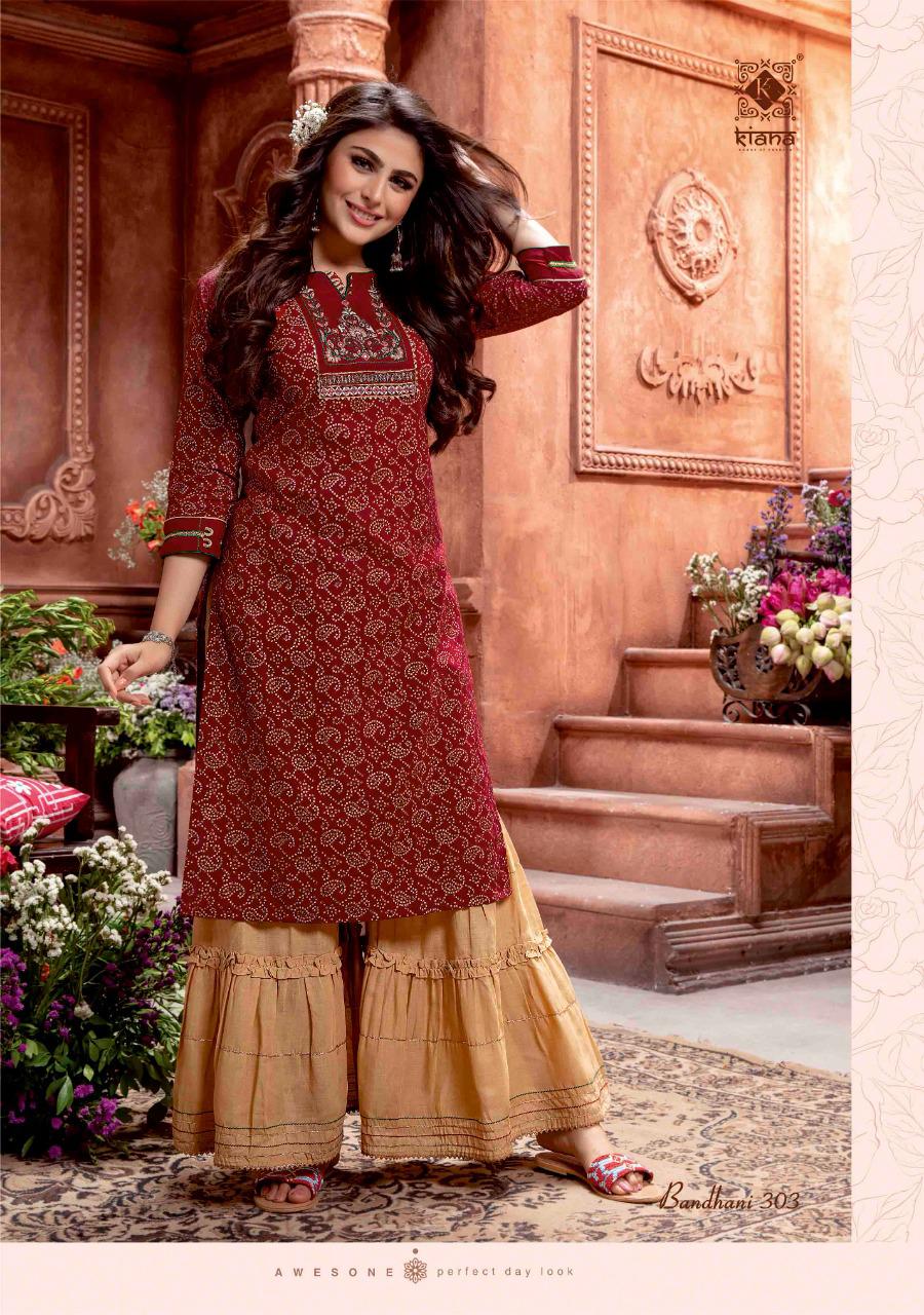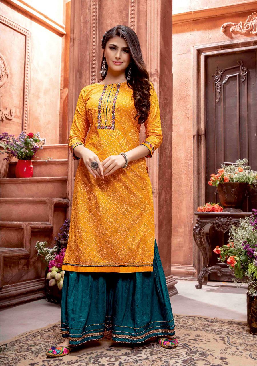 Top :- Cotton Bandhej gold print wid Gotta pati work & thread work Bottom:-Designer stylish sarara |