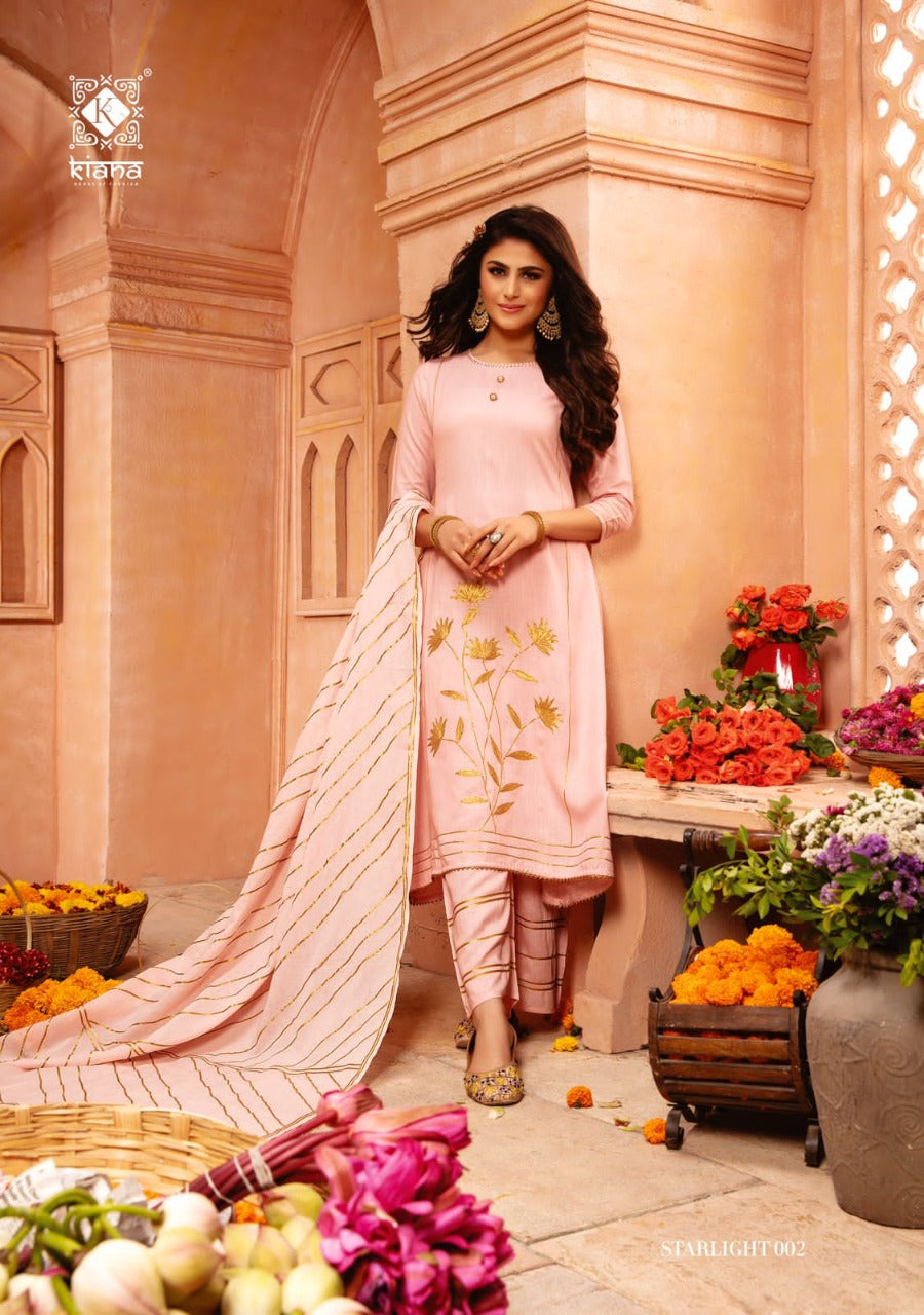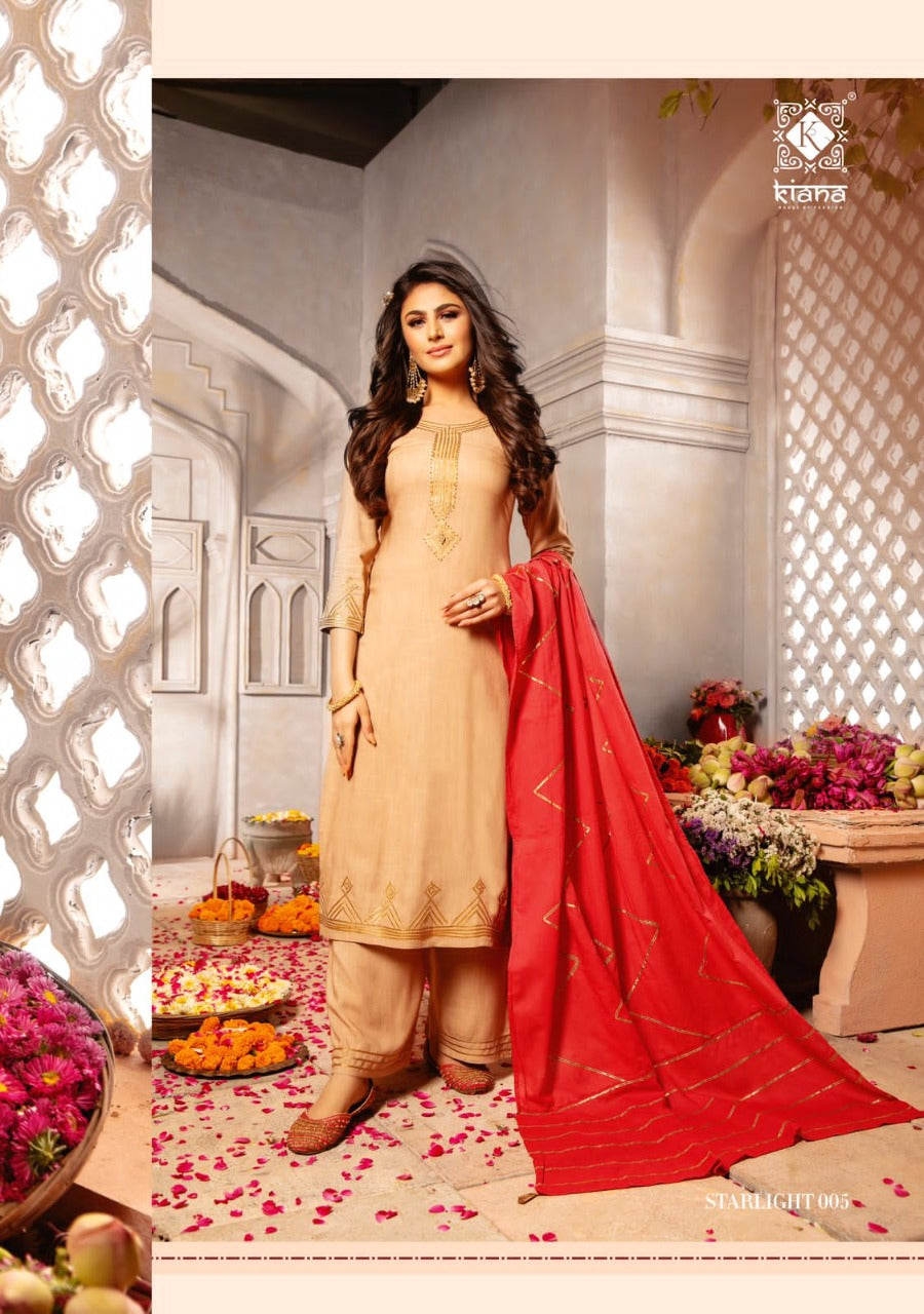Top :- Pure Heavy mal and Heavy Rayon slub with Gota less patti work Bottom:- Pure Heavy mal with Gota less pati work Dupatta :- Pure Heavy mal with Full heavy Gota less pati work Full size dupatta |