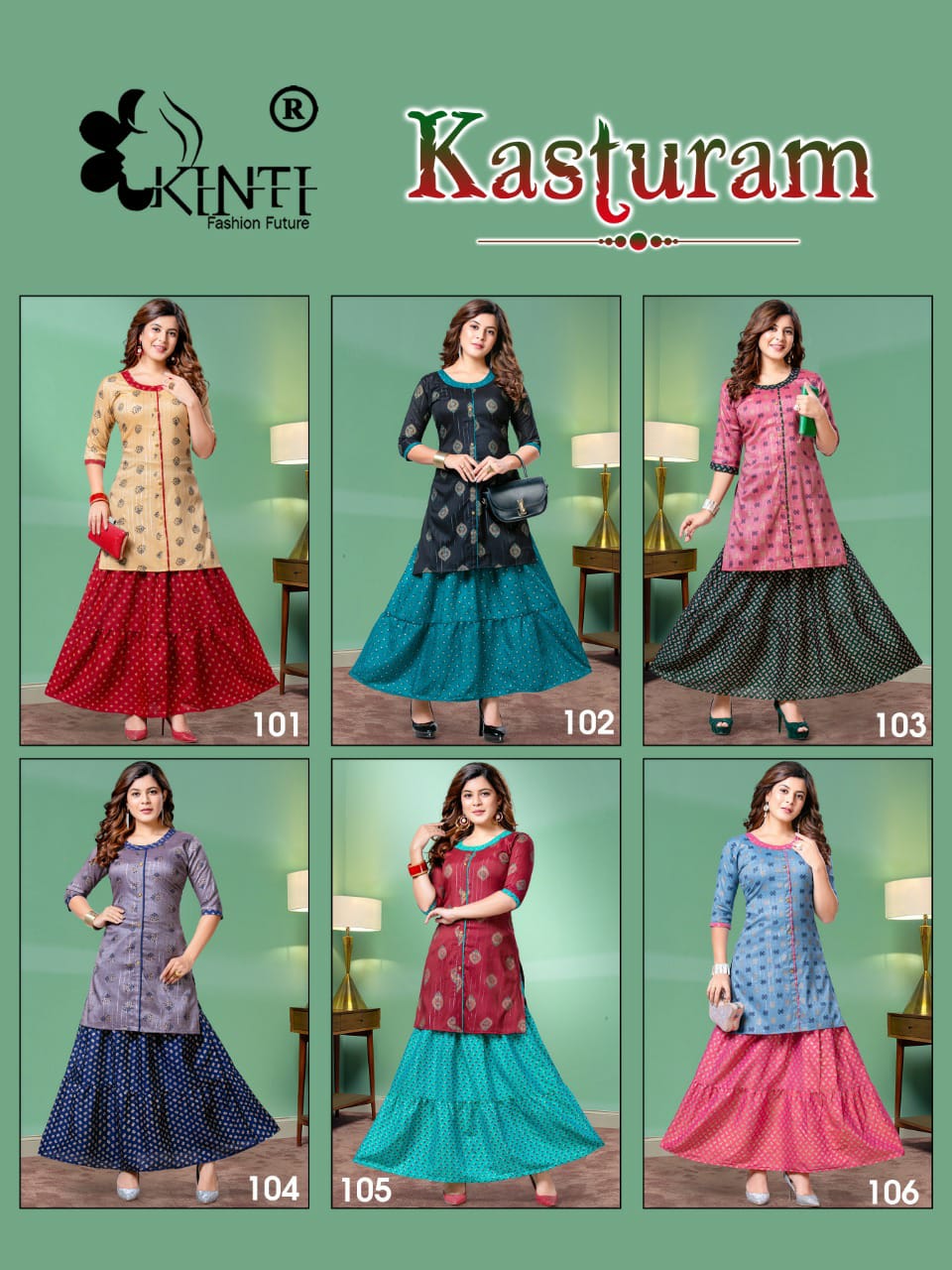 Kinti Kasturam Rayon With Fancy Prints Designer Party Wear Kurtis With Skirt